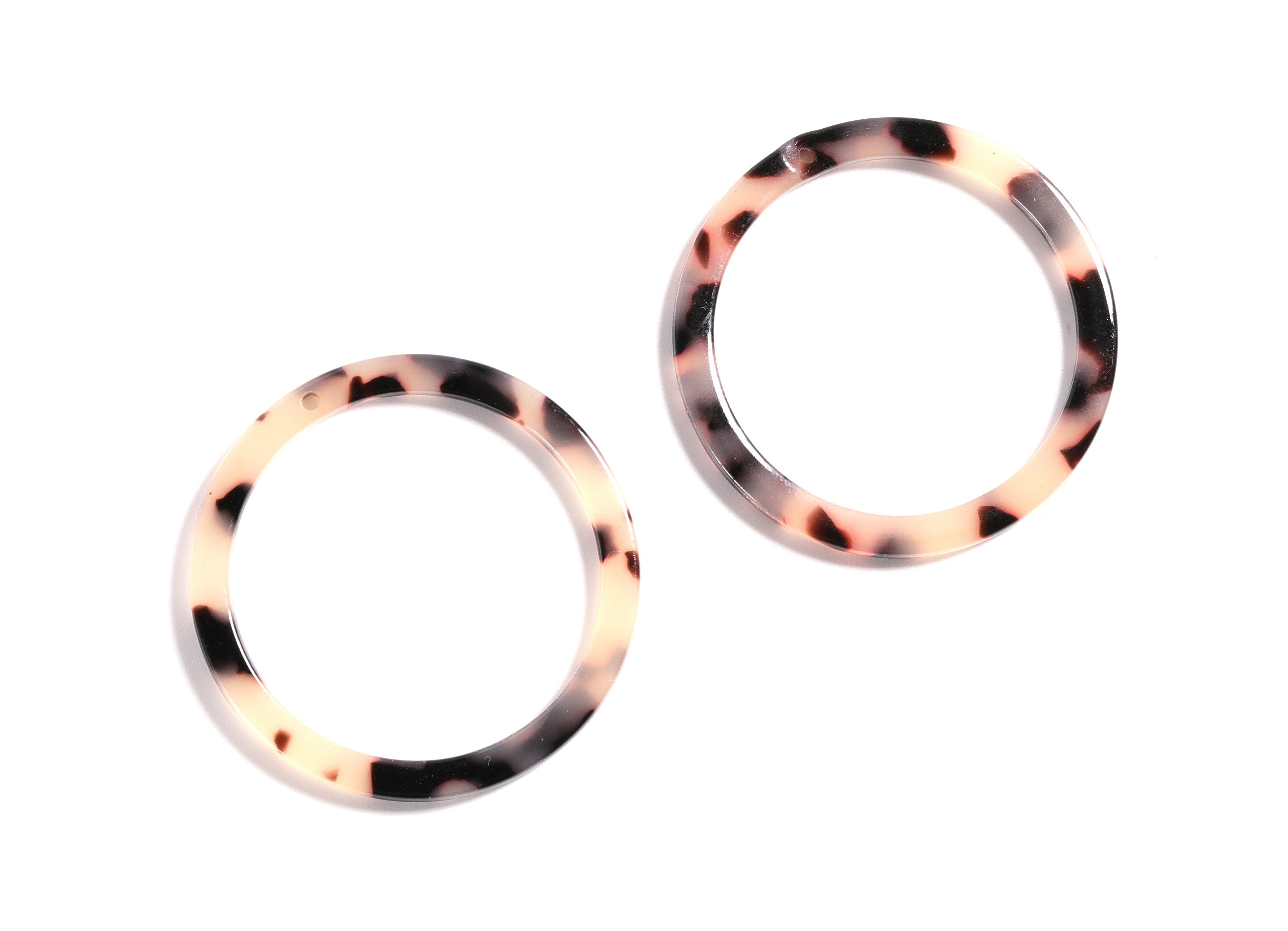 Acetate Hoop Earrings Charms - Blonde Tortoise Hoop Shell Earrings - Circle Shaped Pendant - Color Code: A07 - 36.5x36.5x2.6mm - AC1120B