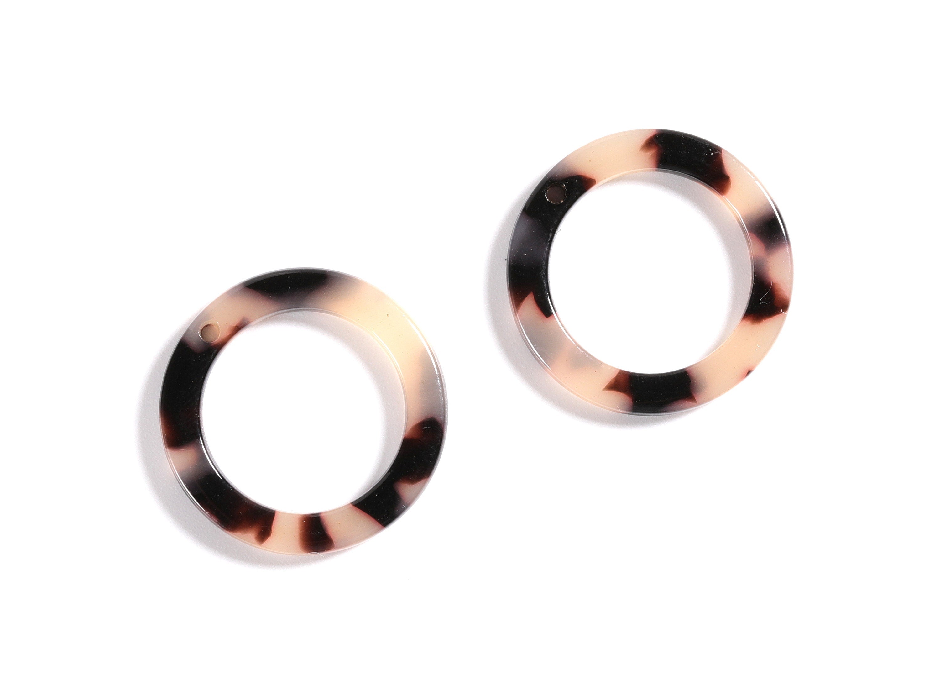 Acetate Hoop Earrings Charms - Blonde Tortoise Hoop Shell Earrings - Round Circle Shaped - Color Code: A06 - 22.8x22.8x2.63mm - AC1118B