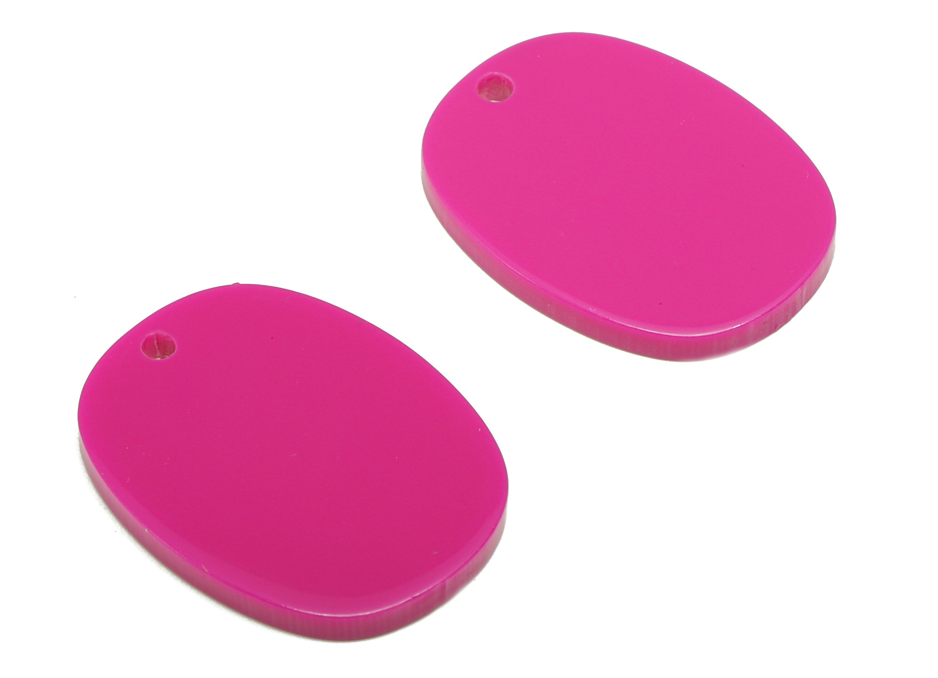 Acrylic Oval Earring Charms - Oval Pink Pendant - Fushia Color - Jewelry Supplies - Color Code: A676 - 26.25x 20.08 x 2.4mm- AC1158-A676