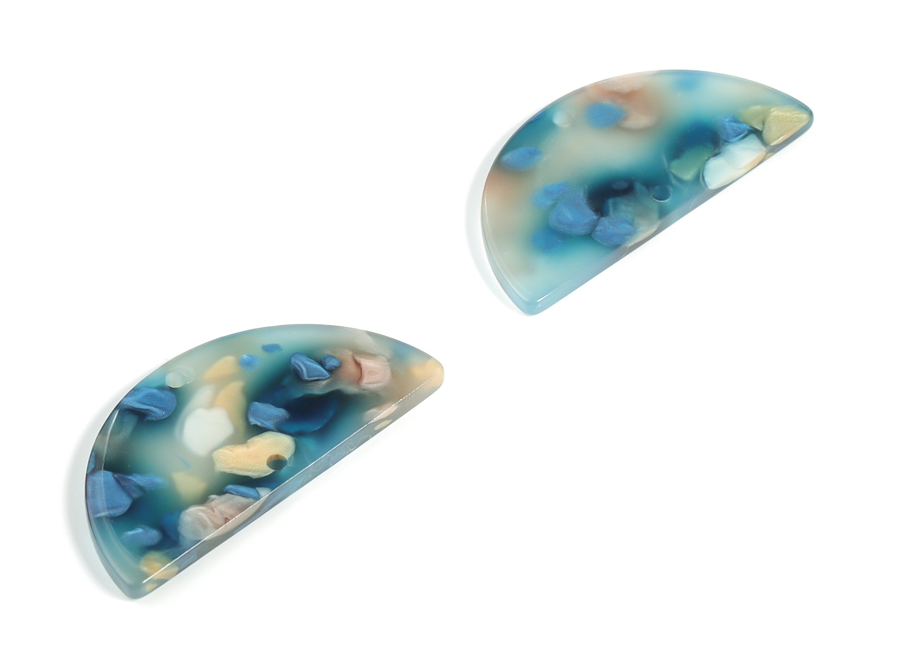 Acrylic Semicircle Earring Connectors - Acrylic Half Moon Charms - 2 Holes - Jewelry Supplies - Color Code:A600 - 34x17x2.3mm - AC1218-A600