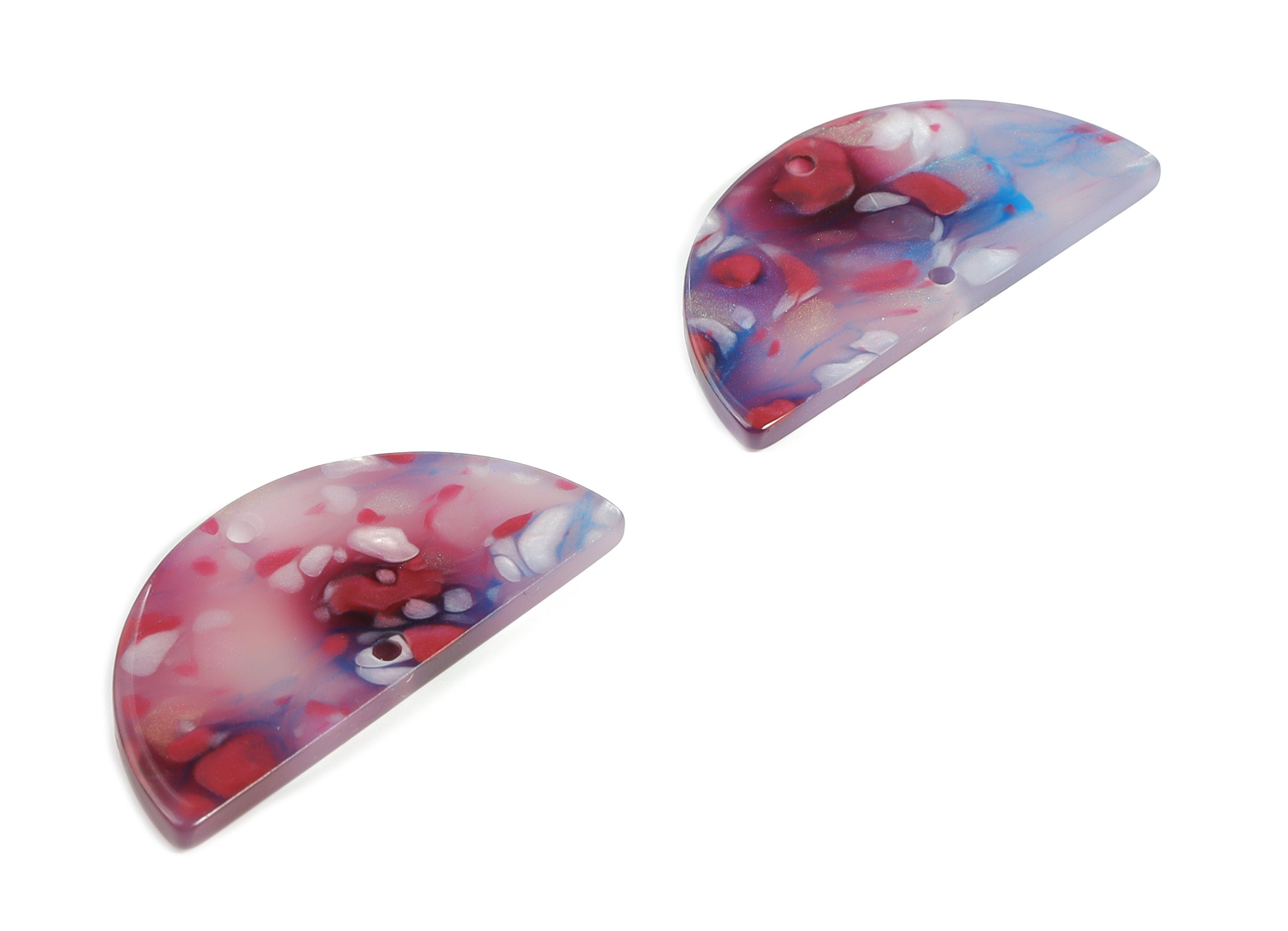 Acrylic Semicircle Earring Connectors - Acrylic Half Moon Charms - 2 Holes - Jewelry Supplies - Color Code:A609 - 34x17x2.8mm - AC1218-A609