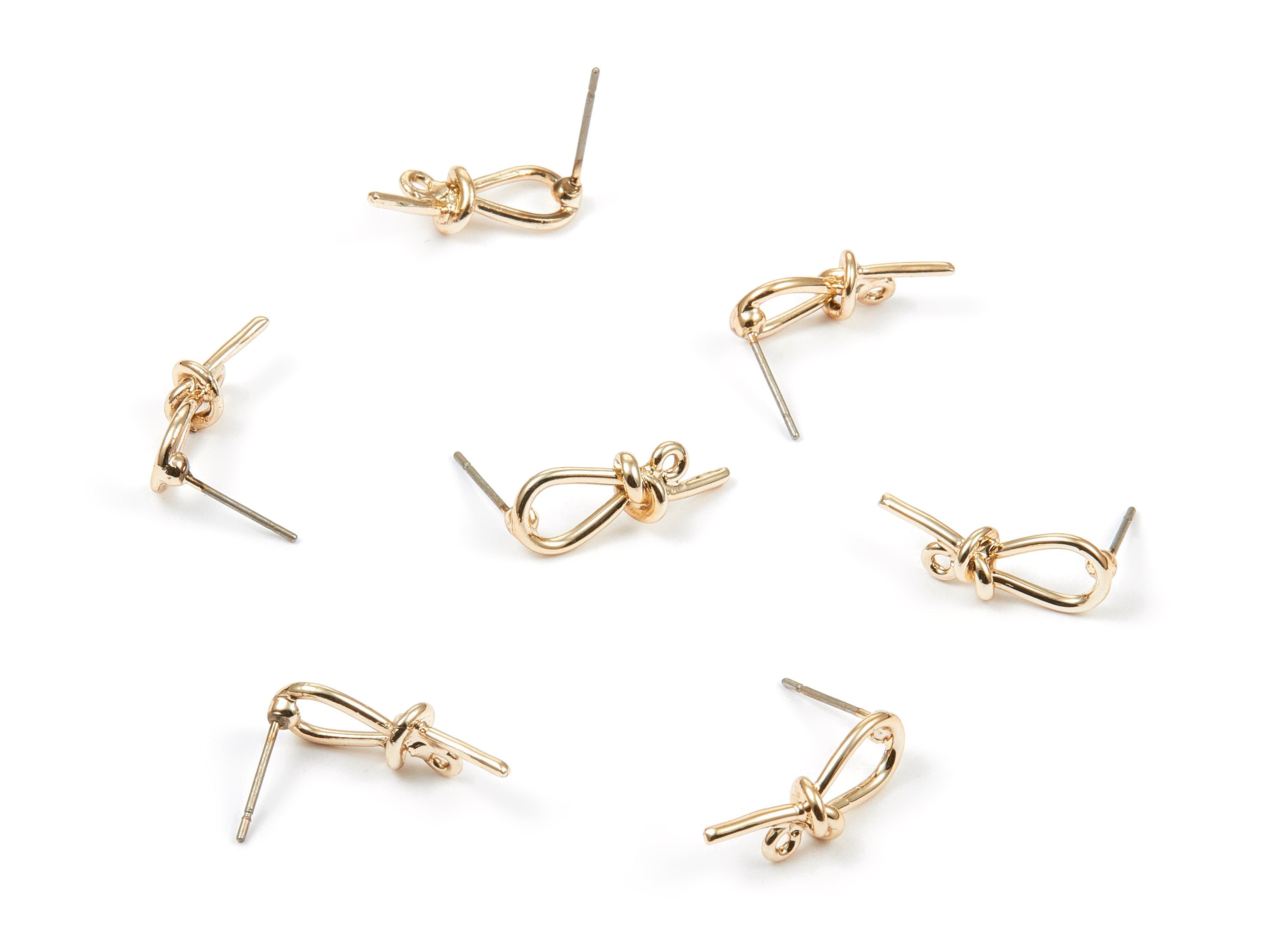 Alloy Bow Earring Stud - Zinc Alloy Bow Earring Post - Gold Tone Plated - Earring Findings - 19.57x7.37mm - ZZ1345