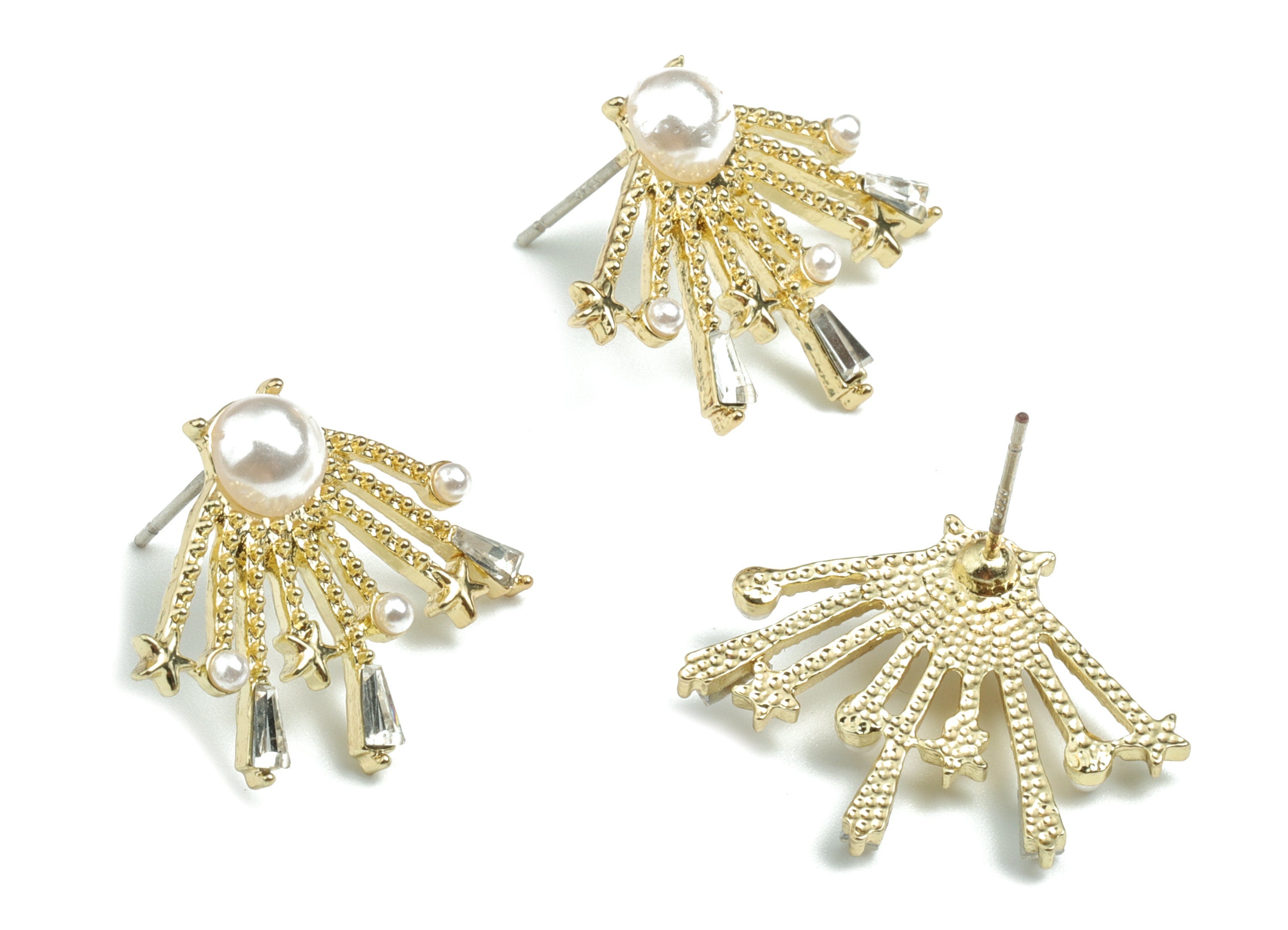 Alloy Branch Earring Stud - Gold Alloy Branch Earring Post - Gold Tone Plated Alloy - Jewelry Supplies - 25.12x19.61x5.44mm - ZZ1734