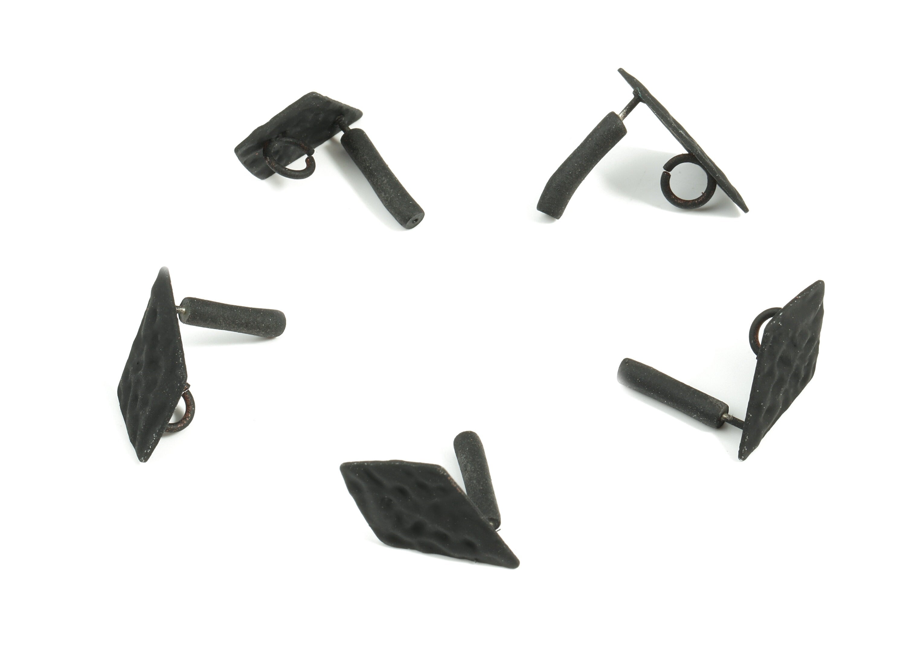 Alloy Rhombus Stud Earring With Loop - Zinc Alloy Rhombus Earring Post - Silver Stud - Matte Black Tone Plated - 18.14x11.34x0.98mm - ZZ1601