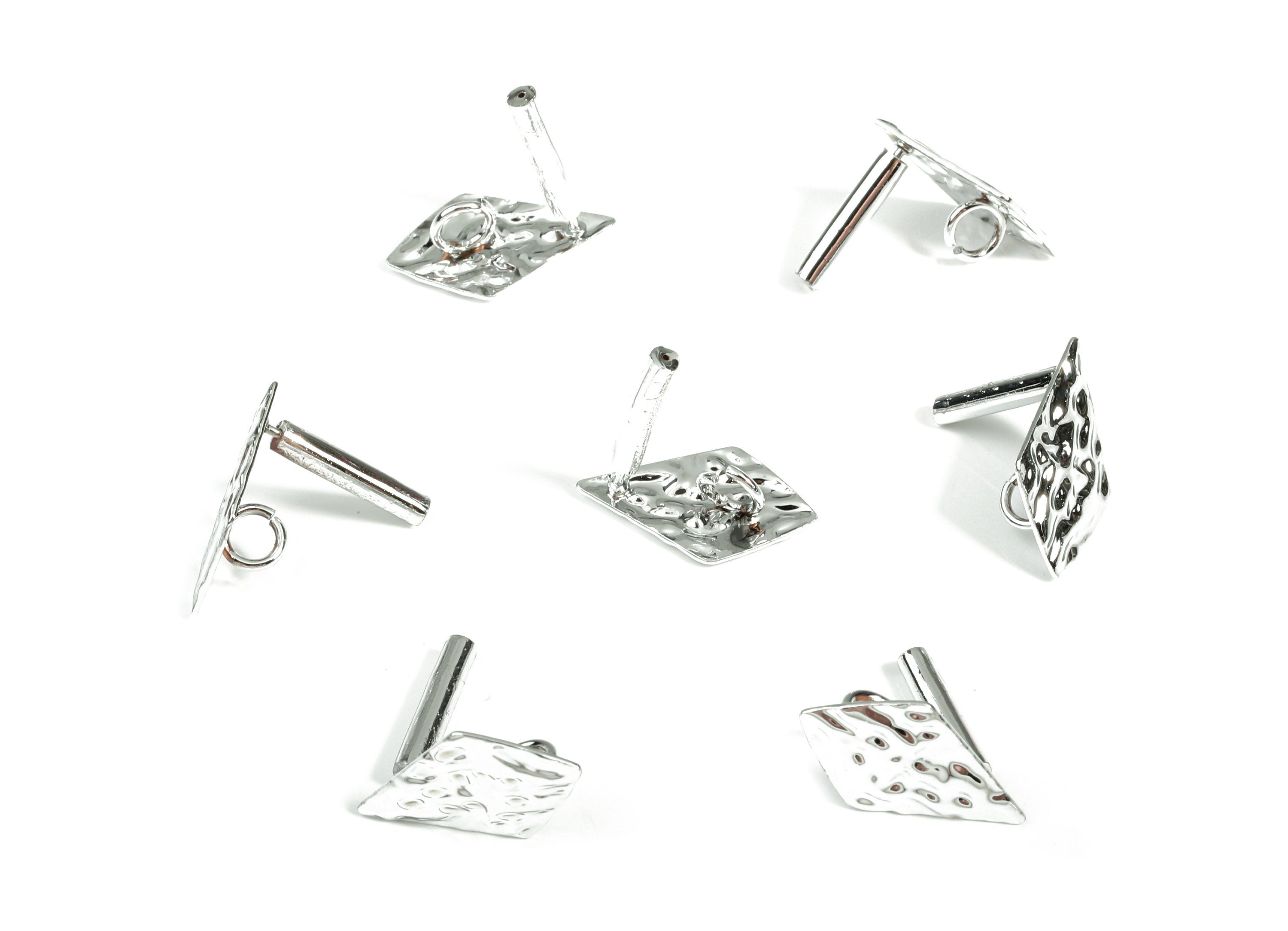 Alloy Rhombus Stud Earring With Loop - Zinc Alloy Rhombus Earring Post - Silver Stud - Silver Tone Plated - 18.14x11.34x0.79mm - ZZ1600