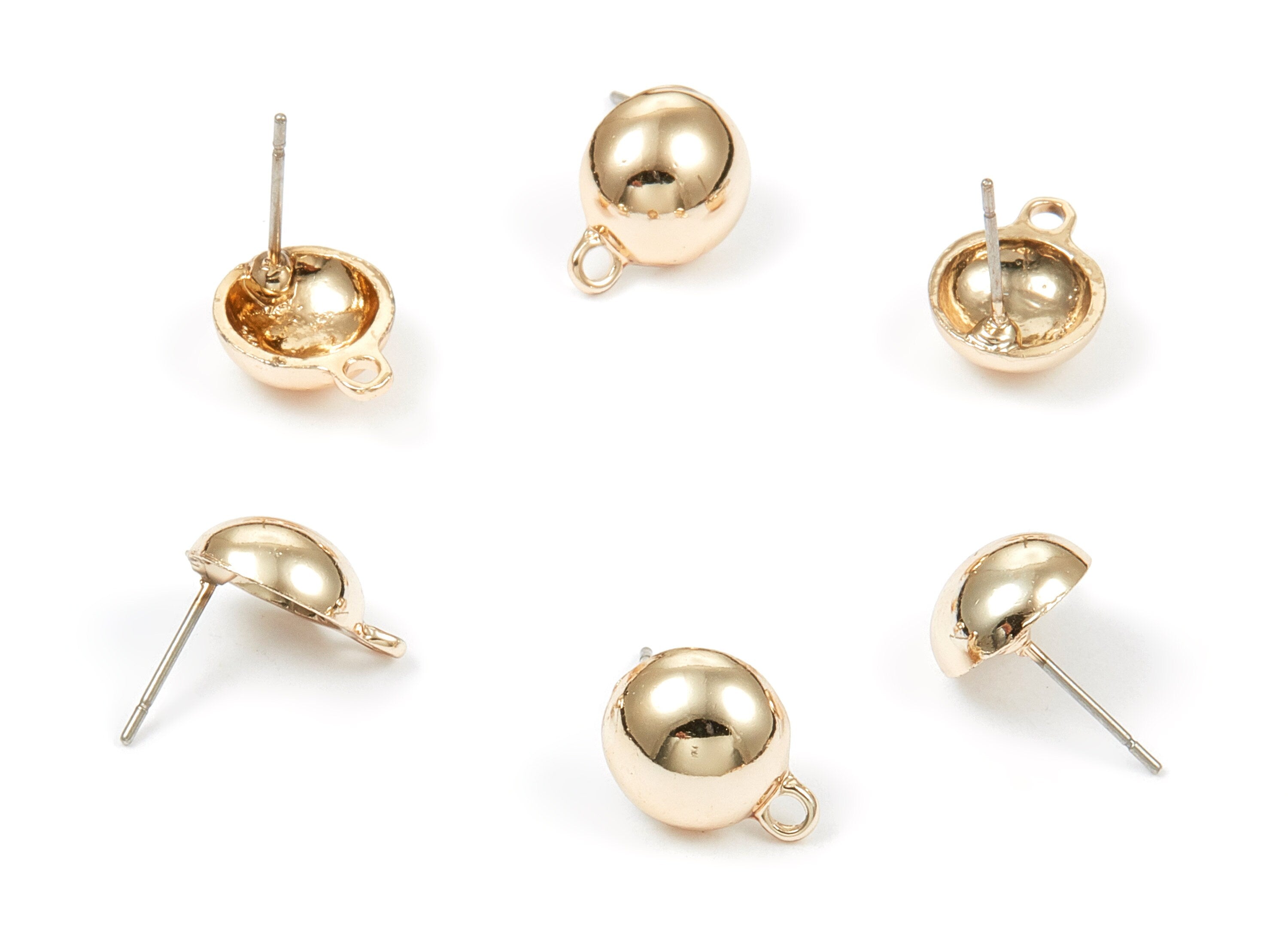 Alloy Semi Ball Earring Stud - Zinc Alloy Semi Ball Earring Post - Gold Tone Plated - Earring Findings - 13.98x6.98mm - ZZ1353