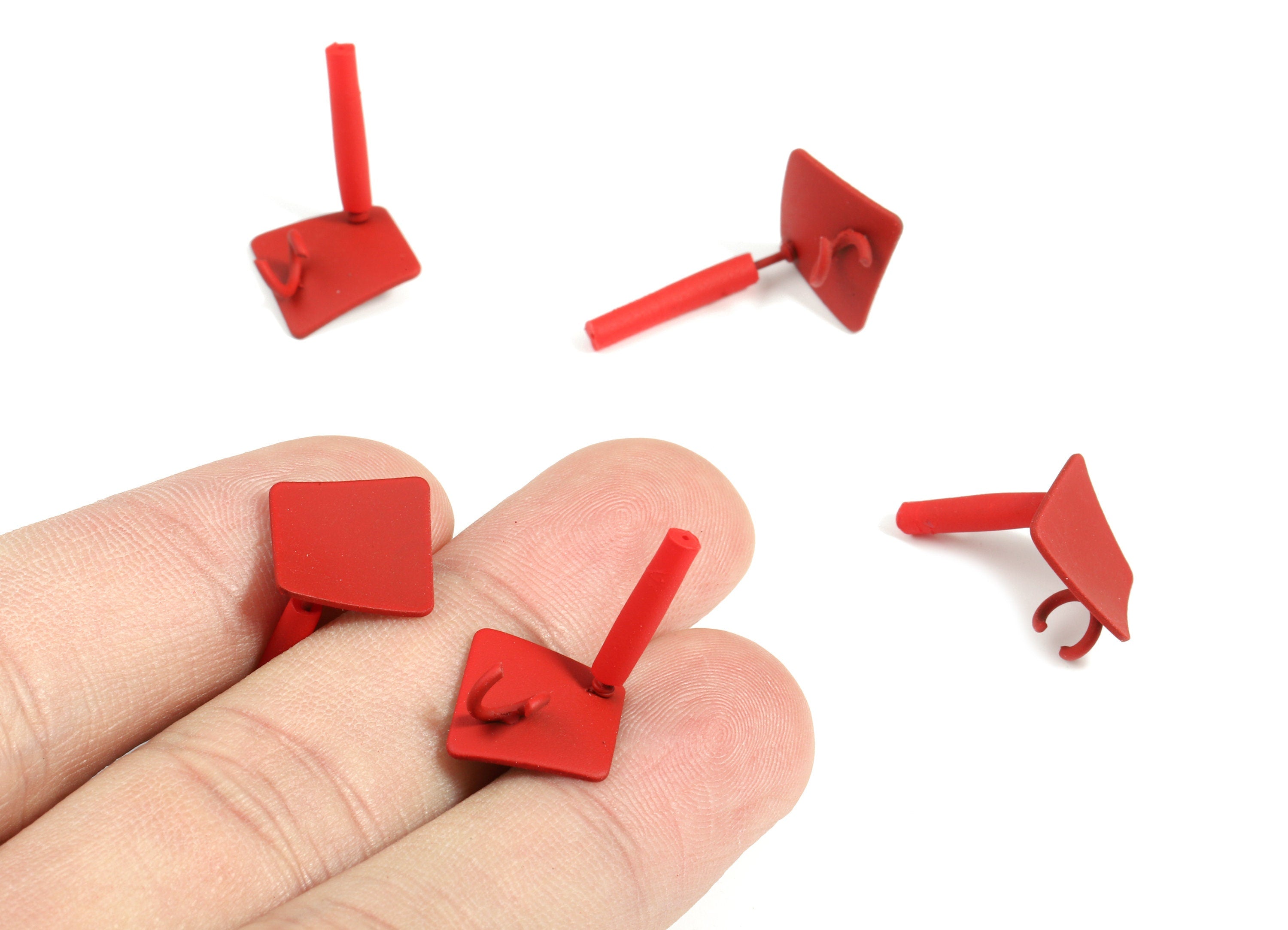 Alloy Square Stud Earring With Loop - Zinc Alloy Square Earring Post - Silver Stud - Matte Red Tone Plated - 11.48x11.48x0.82mm - ZZ1614