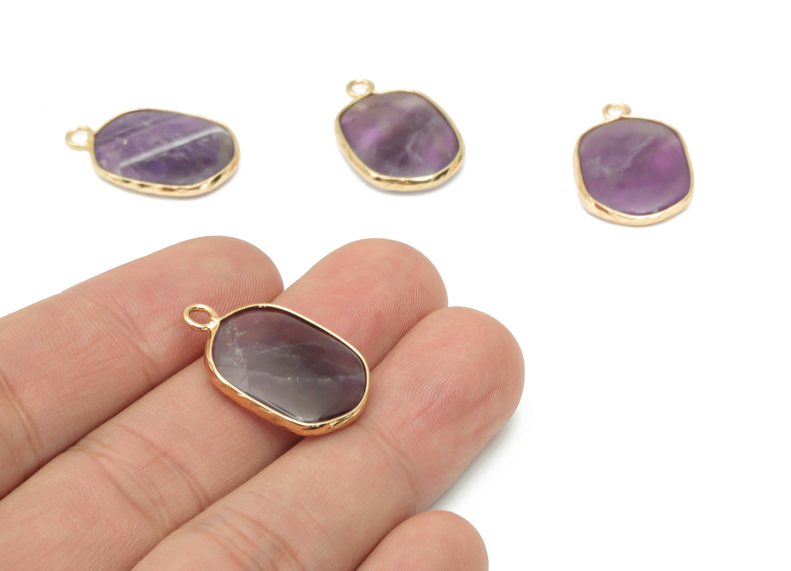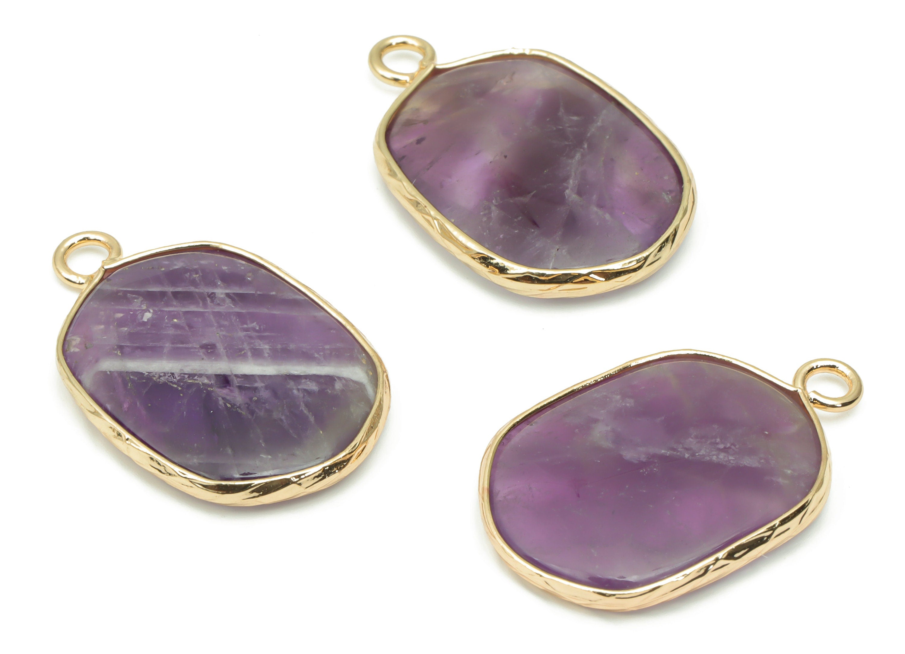 Amethyst Oval Earring Charms - Brass Oval Pendant - Natural Stone - Gold Tone Plated Brass – Jewelry Supplies - 52.2x15.92x4.11mm – NS1699H