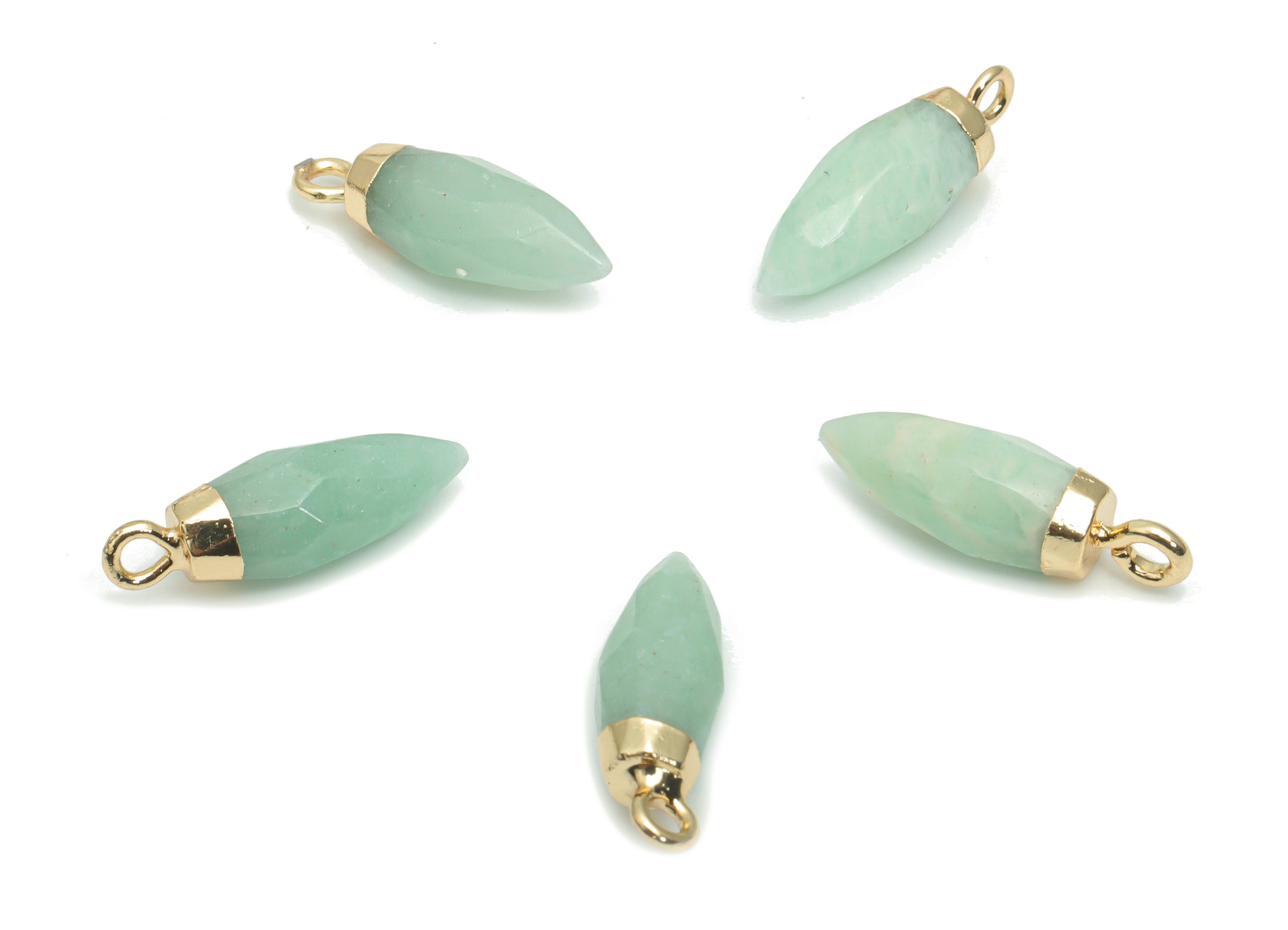 Aventurine Faceted Spike Charms - Brass Stick Pendant - Natural Stone - Gold Tone Plated Brass – Jewelry Supplies - 19.03x6.09x6mm – NS1621A
