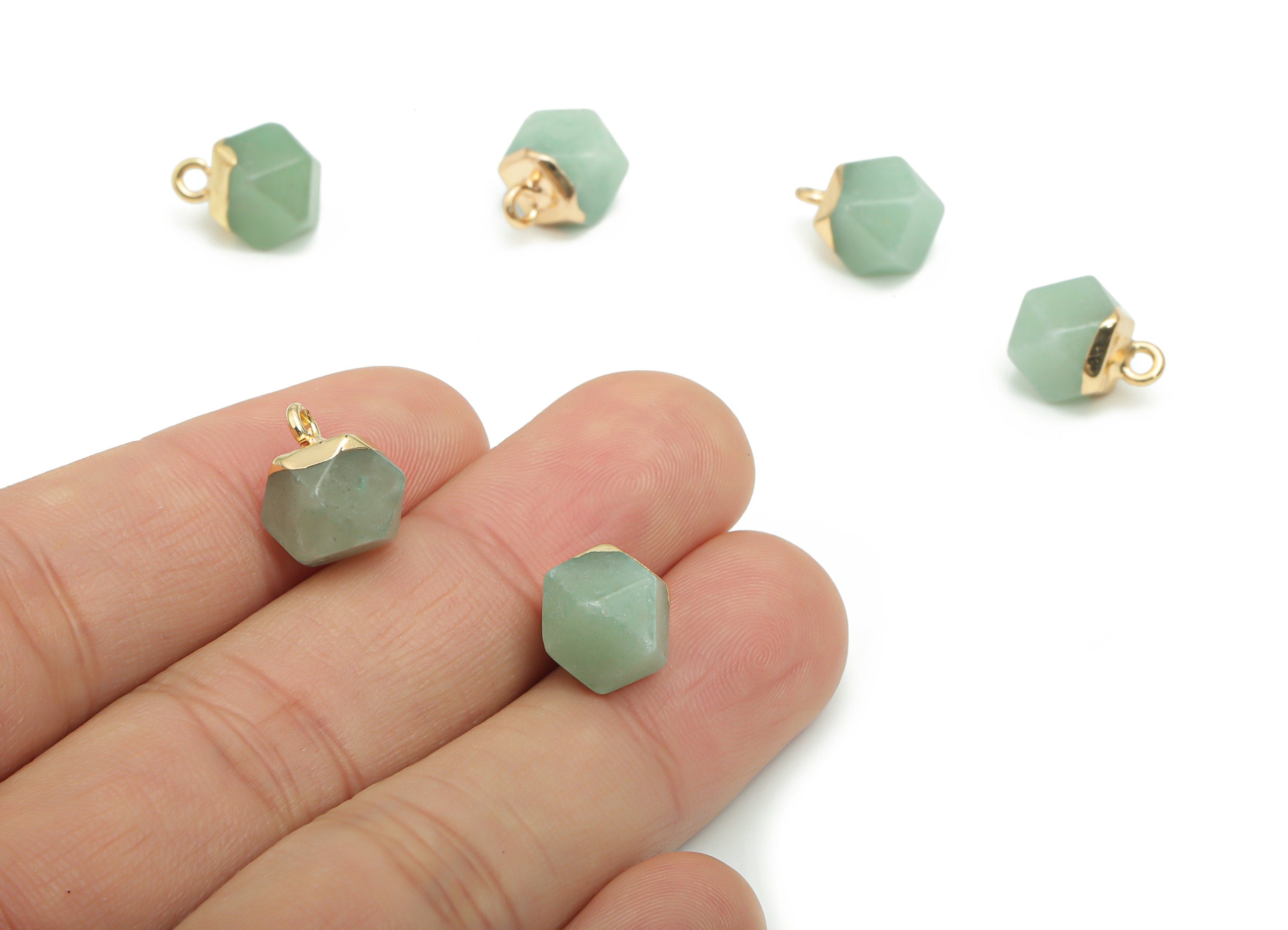 Aventurine Hexagon Earring Charms - Brass Hexagon Pendant - Iron Loop - Natural Stone - Gold Tone Plated Brass – 12.57x8.45x8.2mm – NS1580F