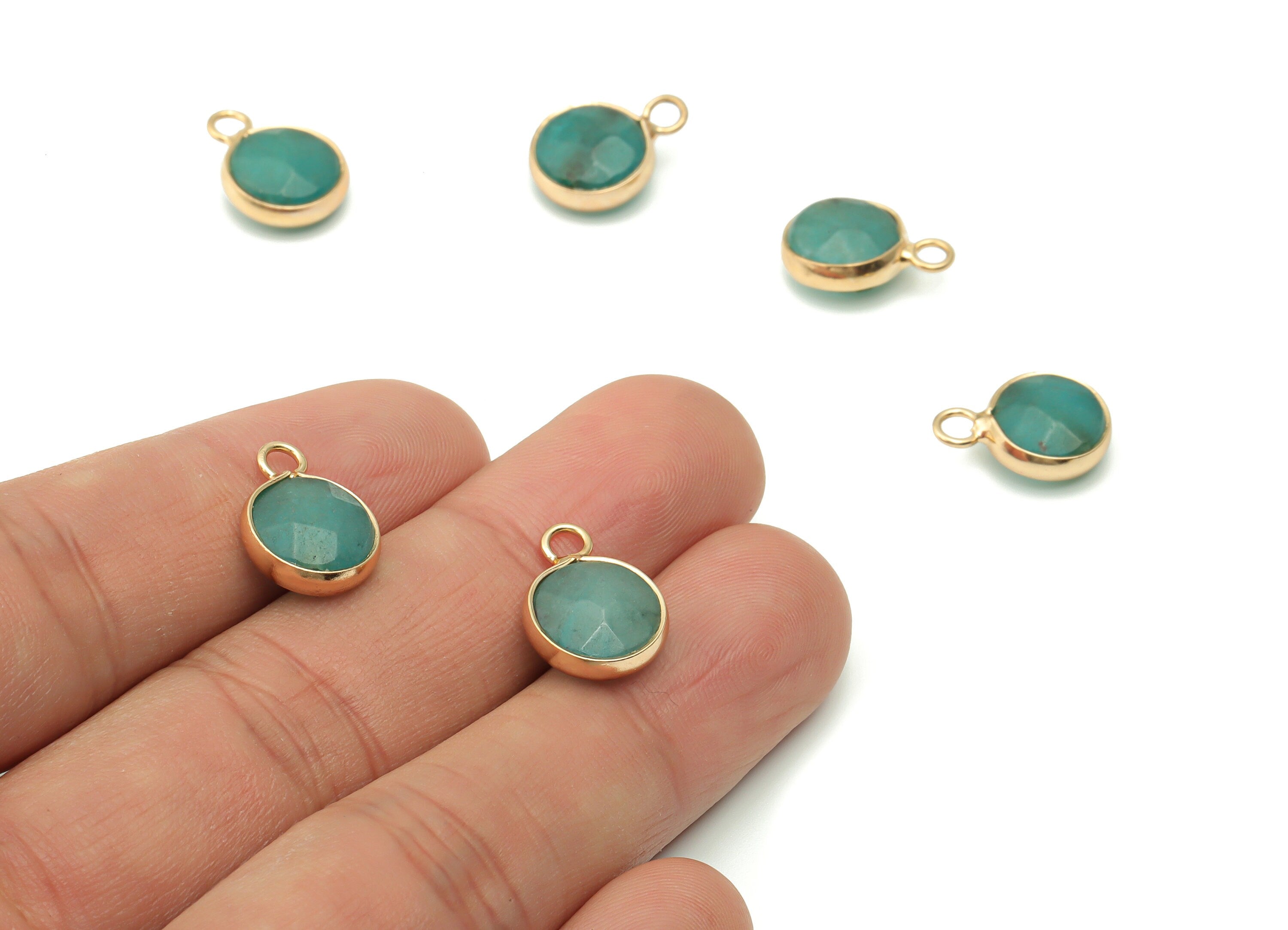 Aventurine Tumbled Round Charms - Brass Circle Pendant - Natural Stone - Gold Tone Plated Brass – Jewelry Supplies - 15.1x11.1x5.8mm–NS1553B