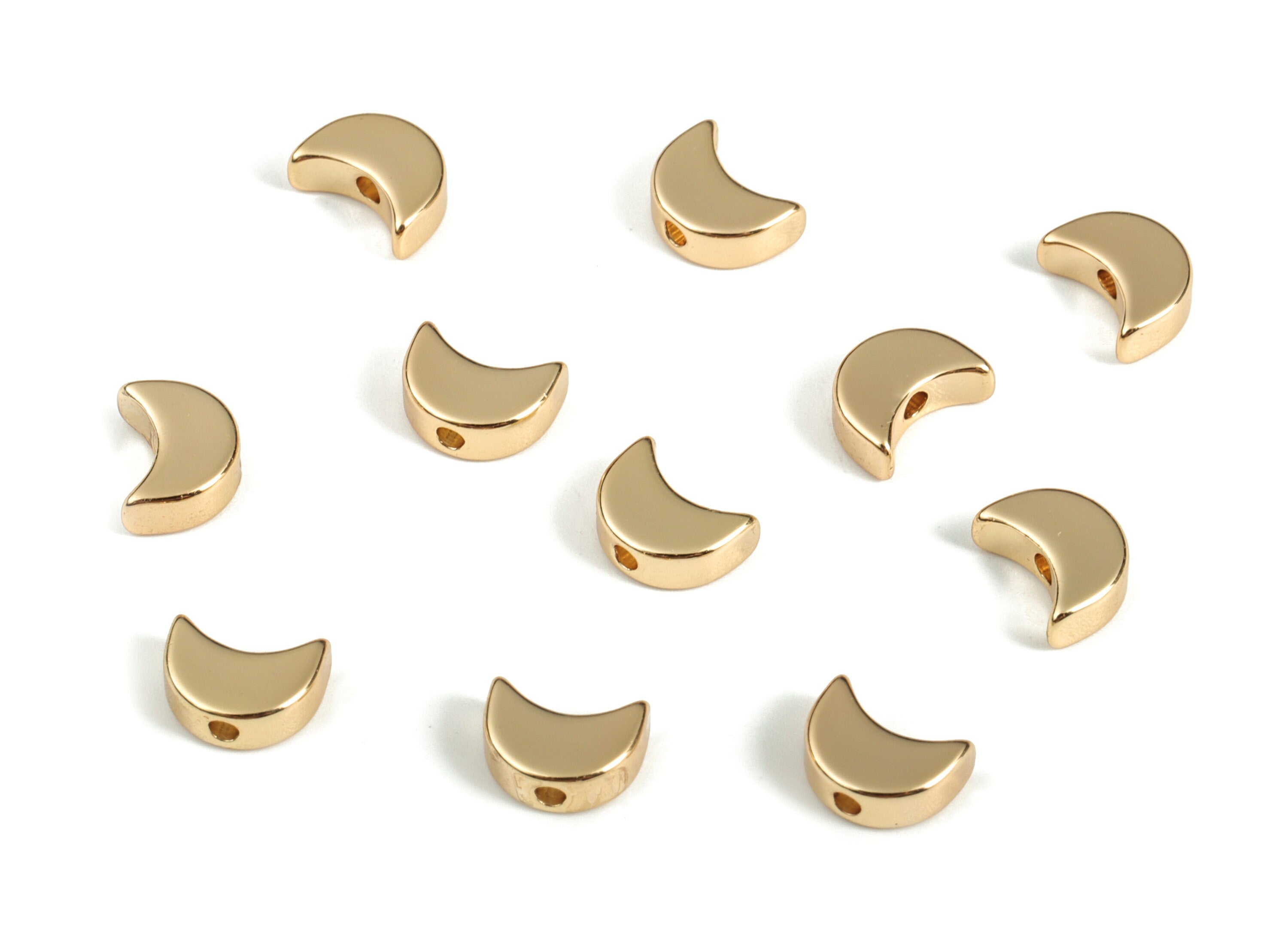 Add a celestial touch to your designs with these tiny moon beads. A wide hole of the bead, you can easily add it to designs. Make necklaces and bracelets for a nighttime accent with these crescent moon beads. It has a brilliant gold shine that will look amazing. Perfect for DIY jewelry making projects!