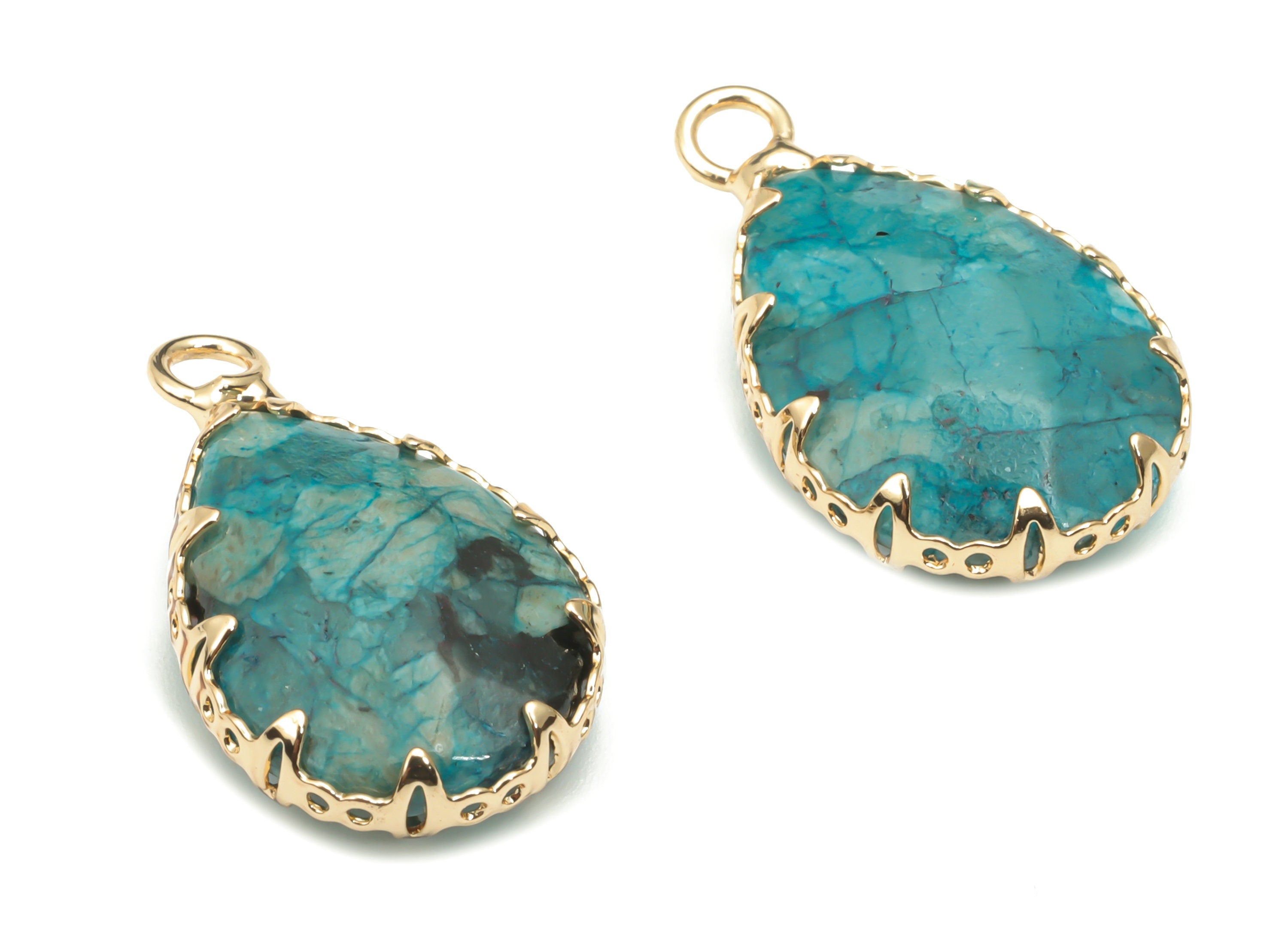Blue Apatite Faceted Natural Stone Teardrop Charm - Brass Drop Pendant - Gold Tone Plated Brass – Jewelry Supplies - 23.1x13.9x5.6mm–NS1636J