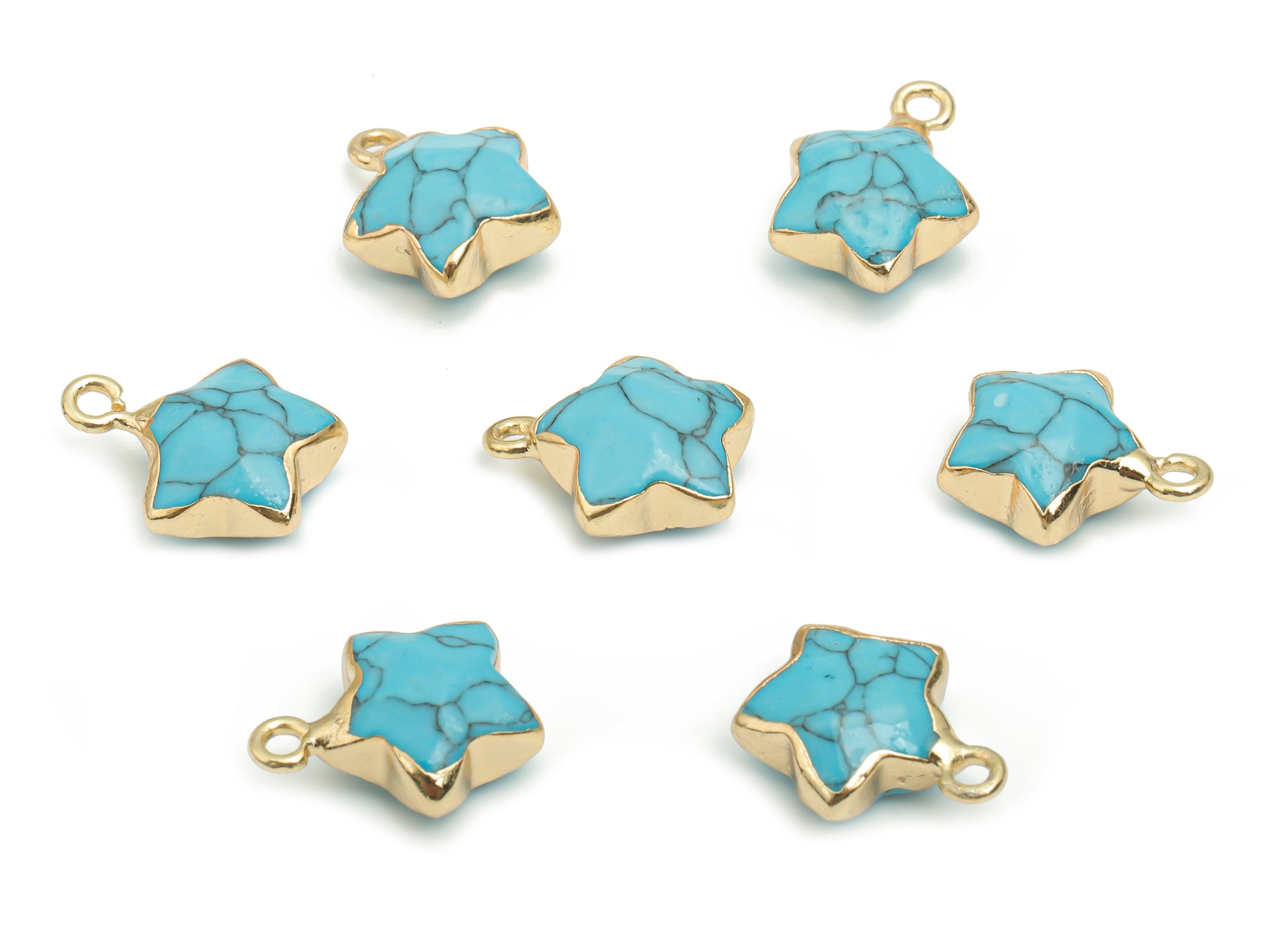 Blue Turquoise Star Earring Charms - Brass Star Pendant - Iron Loop - Natural Stone - Gold Tone Plated Brass – 15.94x12.86x6.51mm – NS1579H