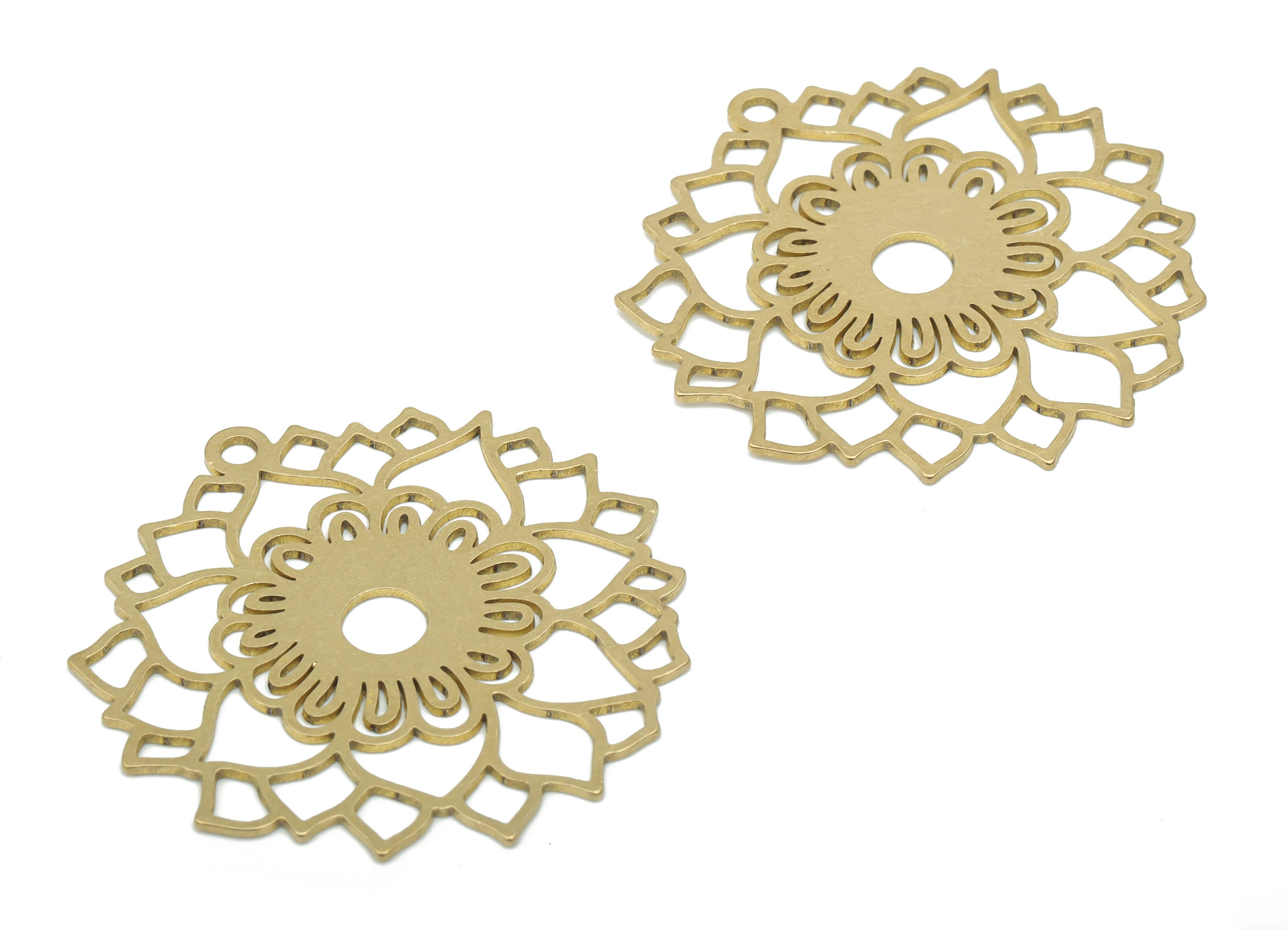 Brass Abstract Flower Earring Charms - Raw Brass Sunflower Pendant - DIY Jewelry Making Supplies - 34.77x34.63x0.63mm - PPA2626