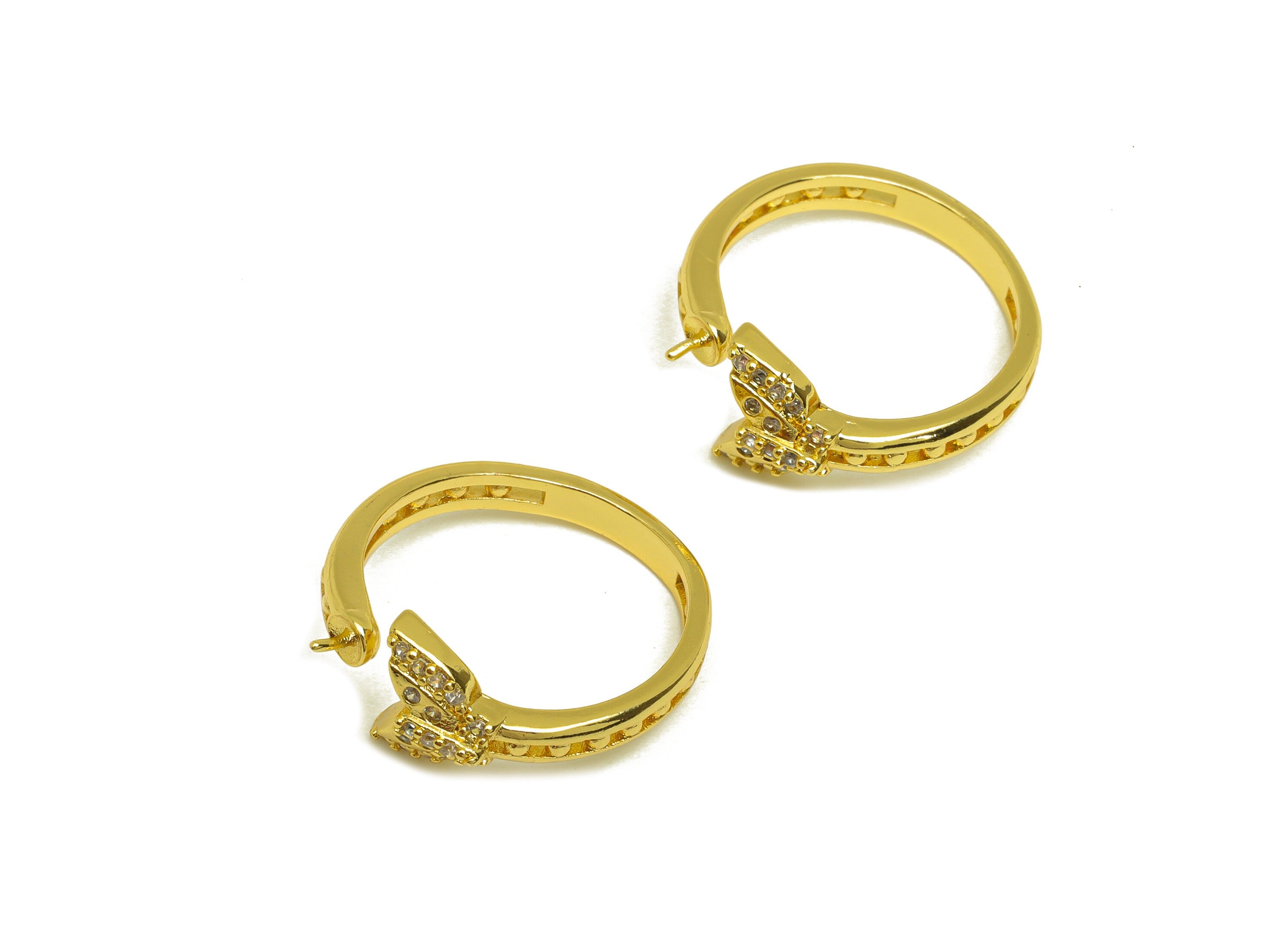 Brass Adjustable CZ Ring - Brass Butterfly Ring Settings - Brass Cubic Zircon Rings For Pearl - 18K Real Gold Plating
