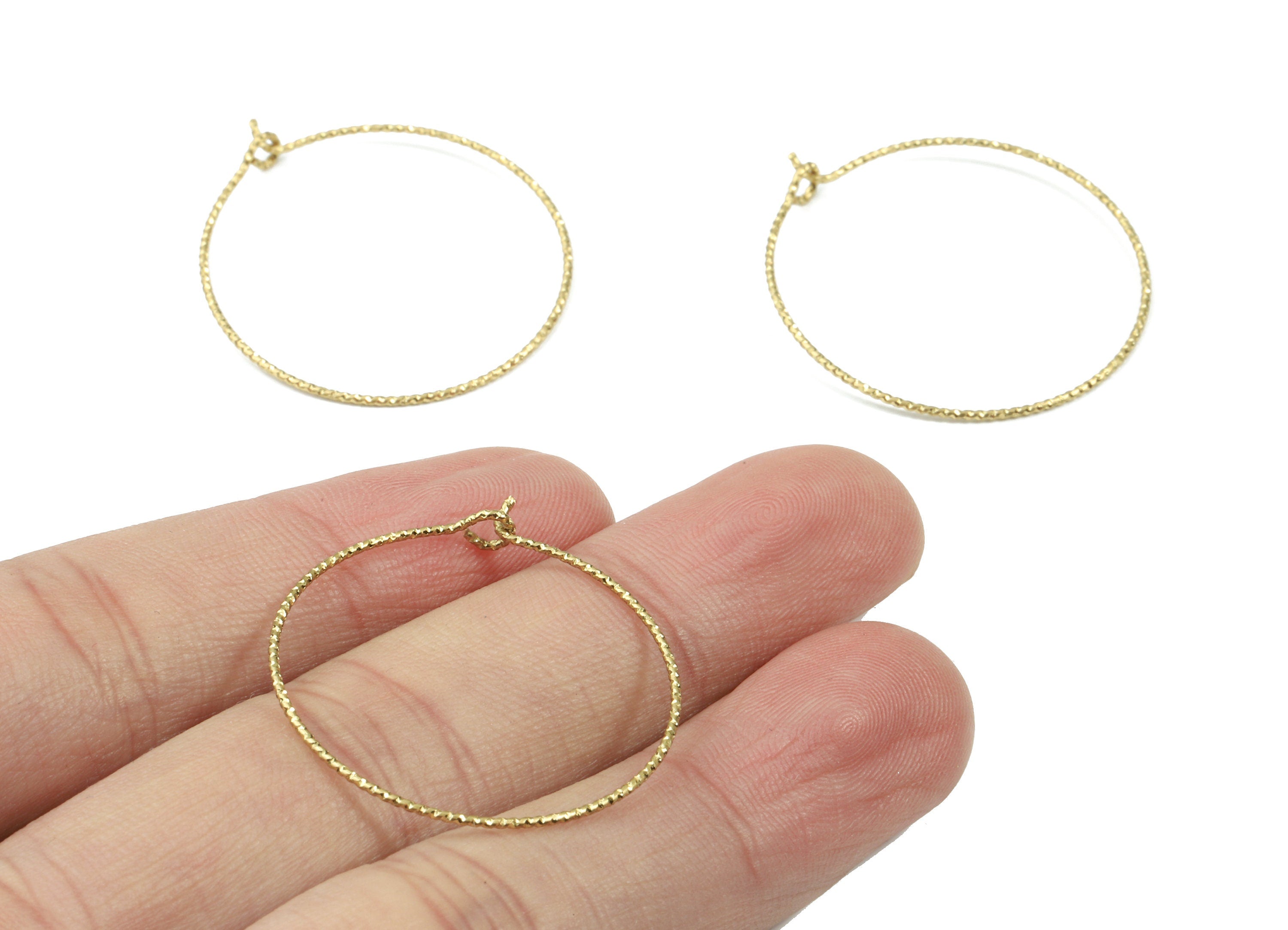 Brass Circle Pattern Ear Wire - 30# Raw Brass Earring Hoops - Rope Hoops - Earring Findings - Jewelry Supplies - 33.45x29.94x0.73mm - PP3112