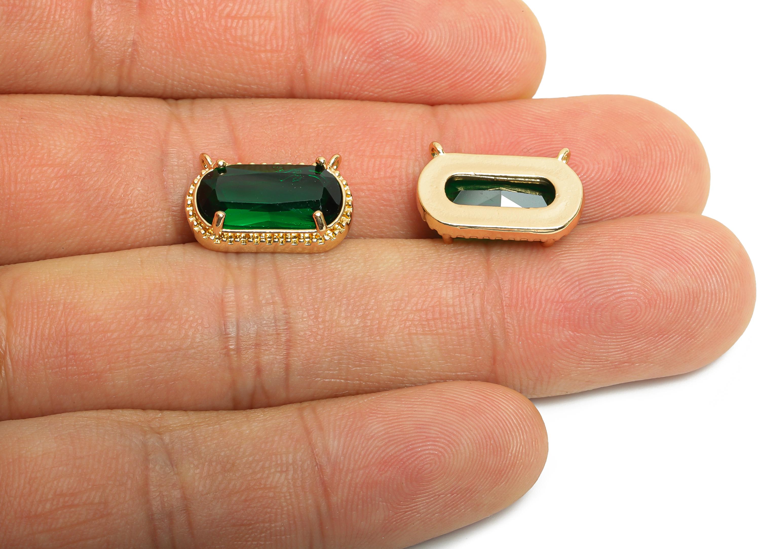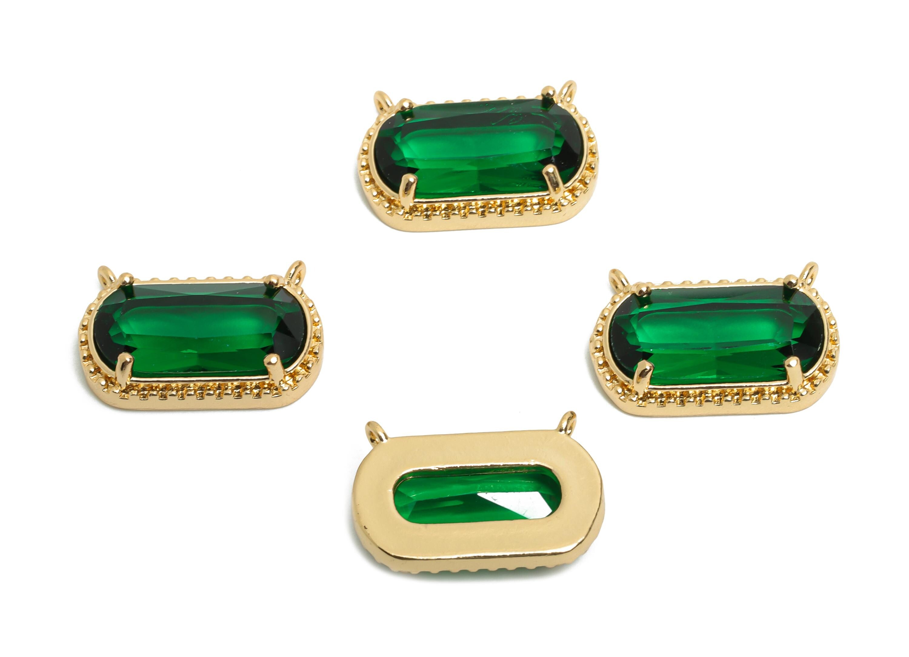 Brass Crystal Oval Pendant - Dainty Sparkling Green Charm - Modern Oval Rectangular Stone Pendant - KC Gold Tone Plated - 16x11x4mm -GS1291
