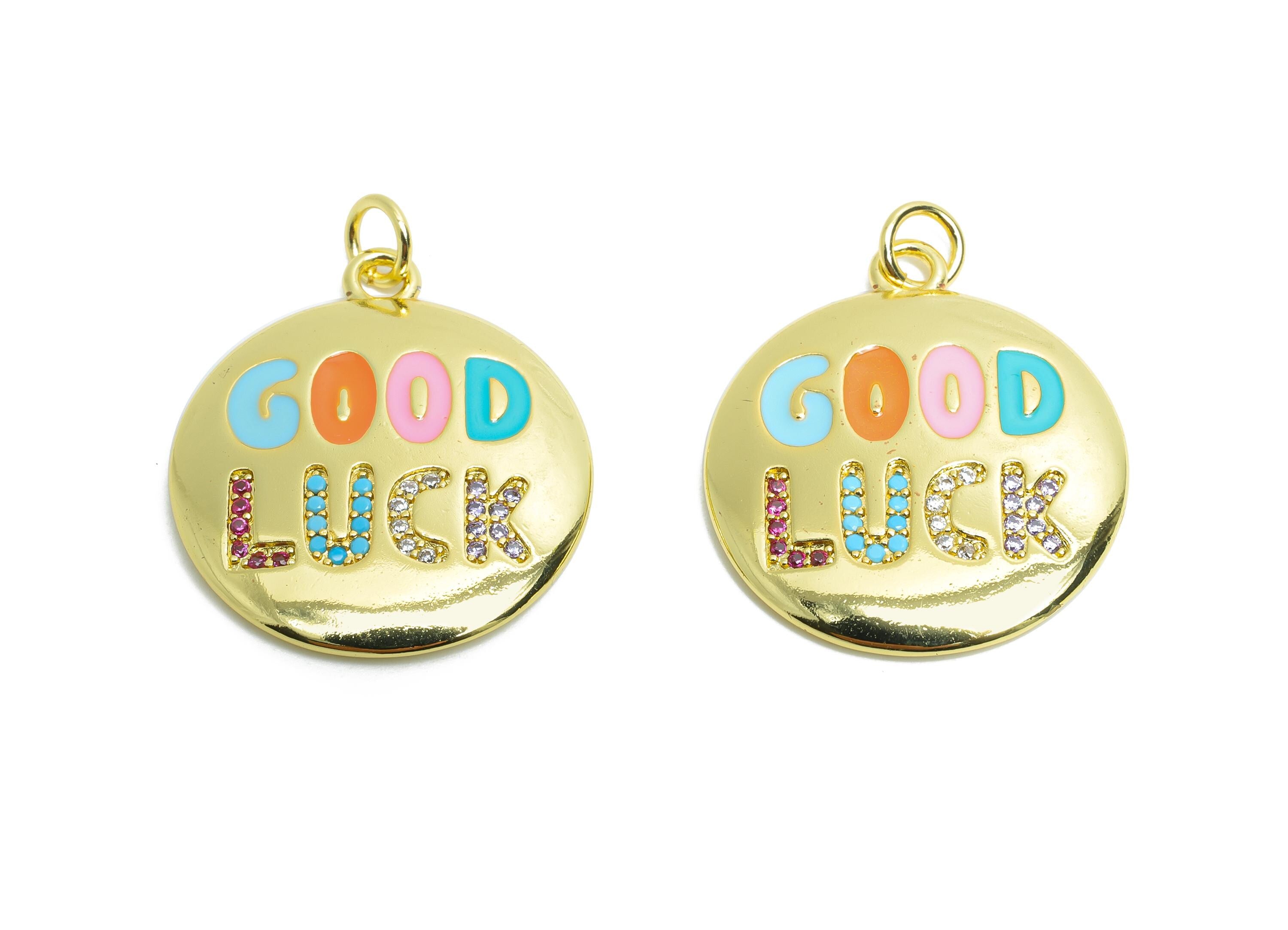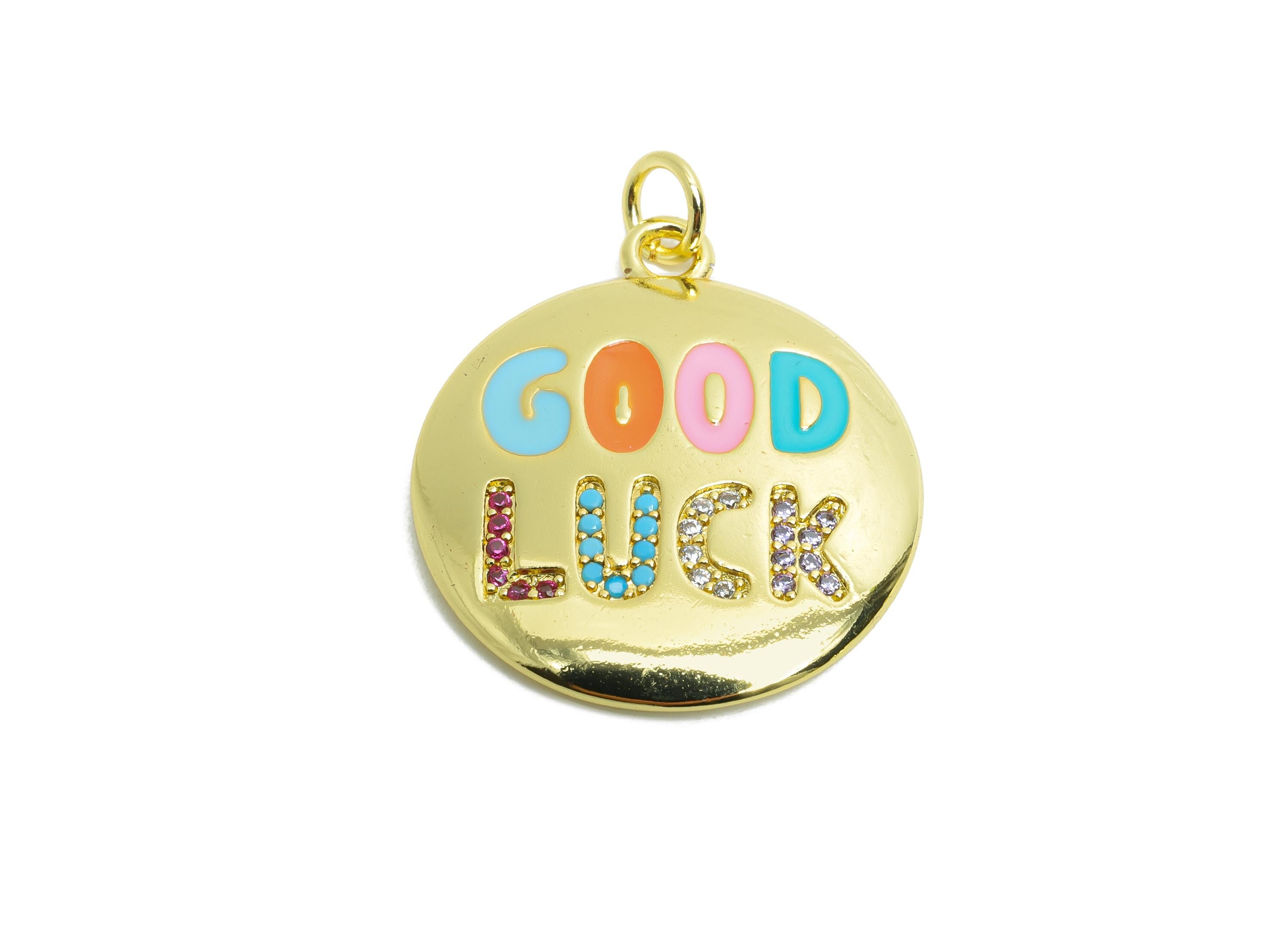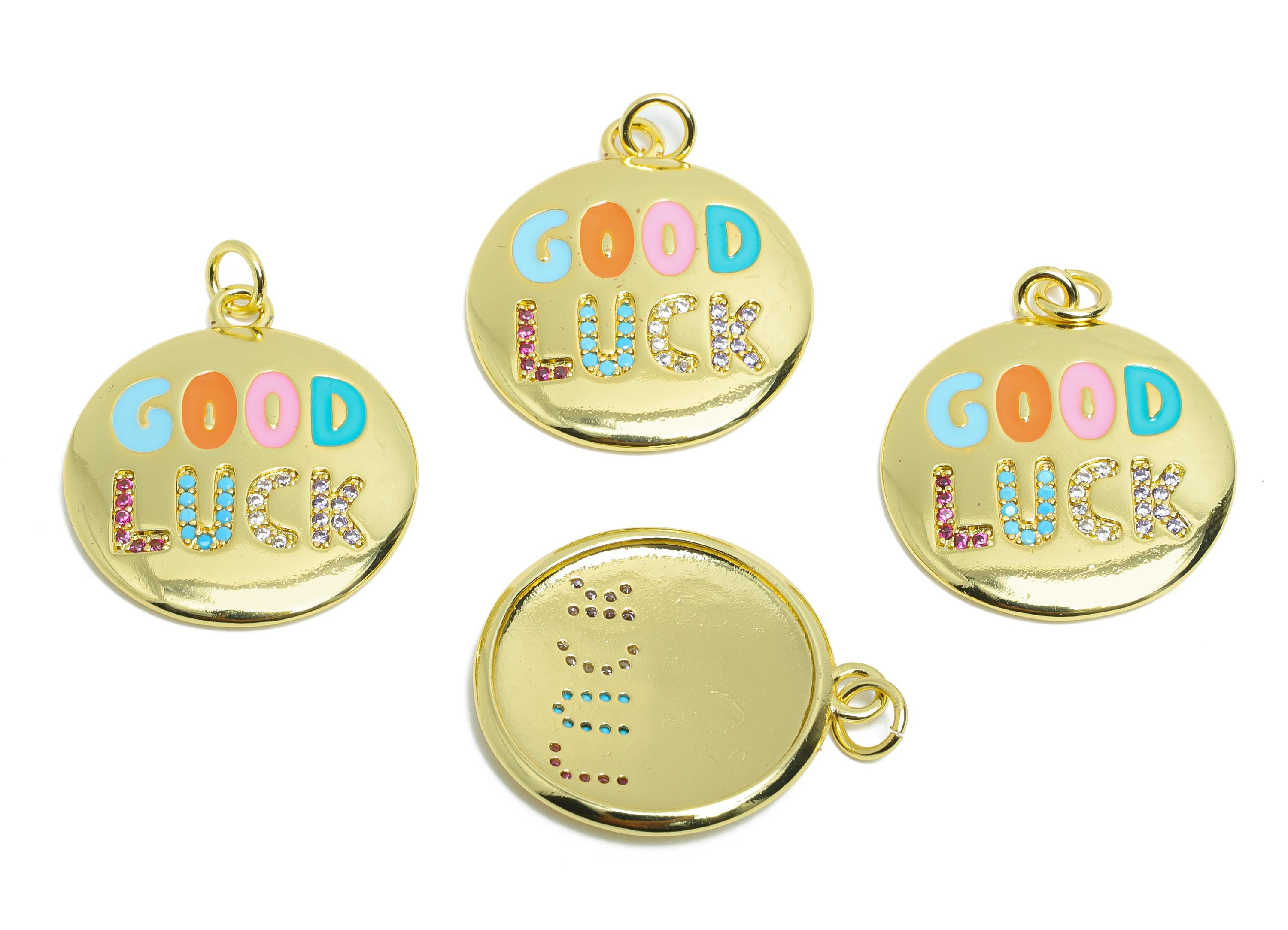 Brass CZ Enamel Pendant - Brass Zircon Colorful Jewelry - Modern Round Good Lucky Pendant - 18K Real Gold Plated