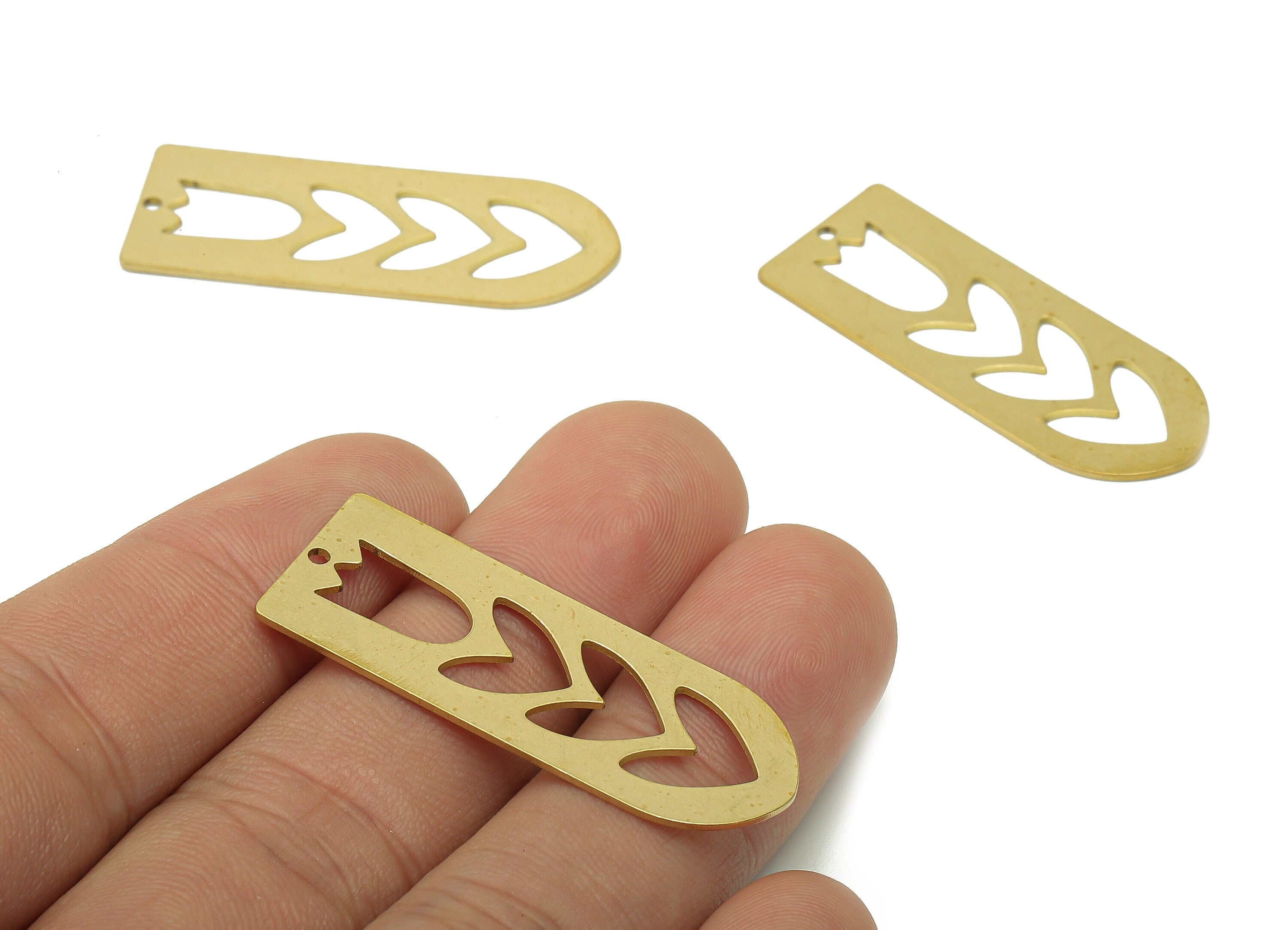 Brass Domed Heart Earring Charms - Raw Brass Flower Cutout Pendant - Tulip Hollow Charm - Earring Findings