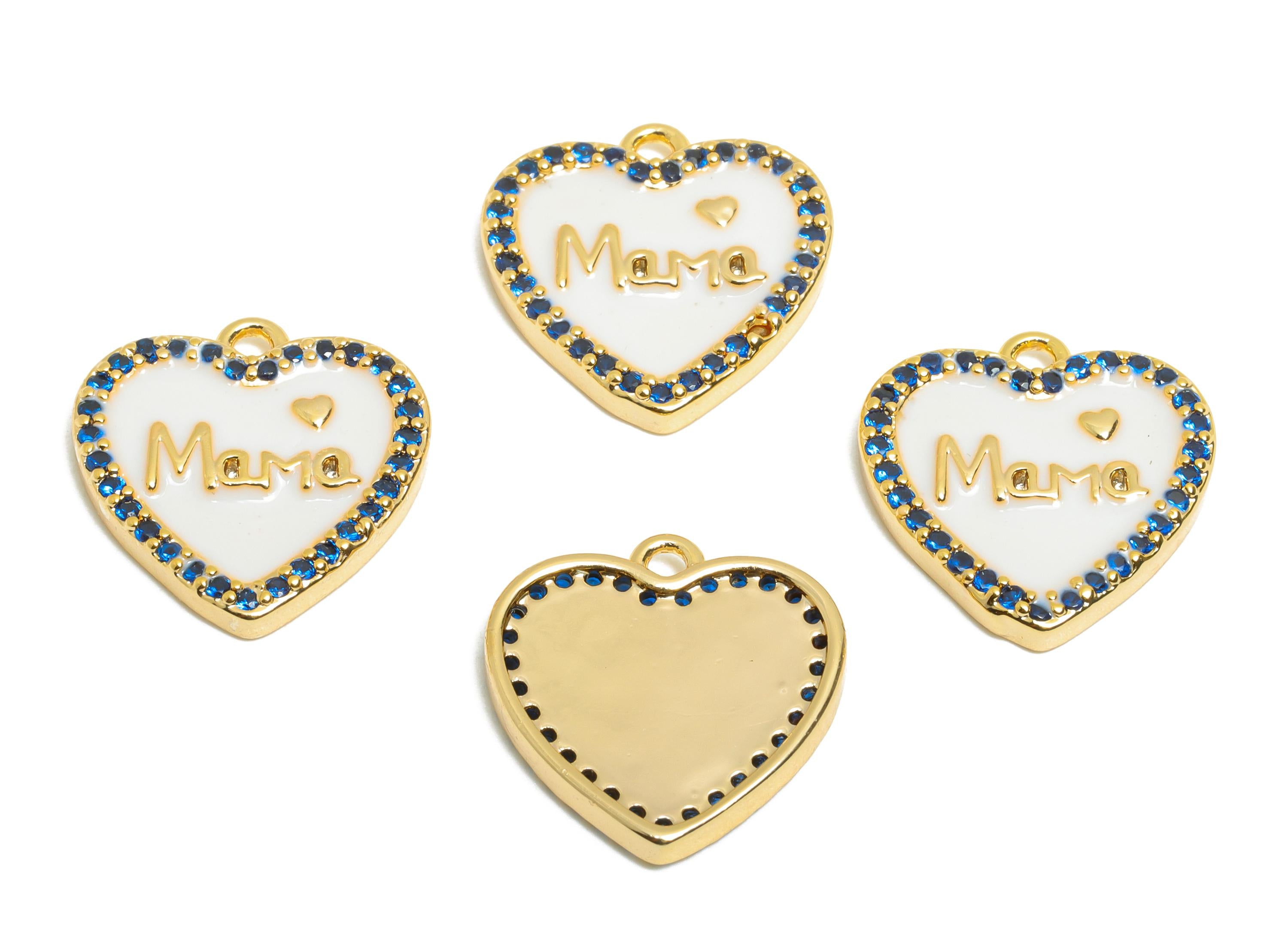 Brass Heart Charm Pendant - Dainty MaMa Enamel Pendant - Cubic Zircon Mother's Heart Jewelry - 18K Real Gold Plated