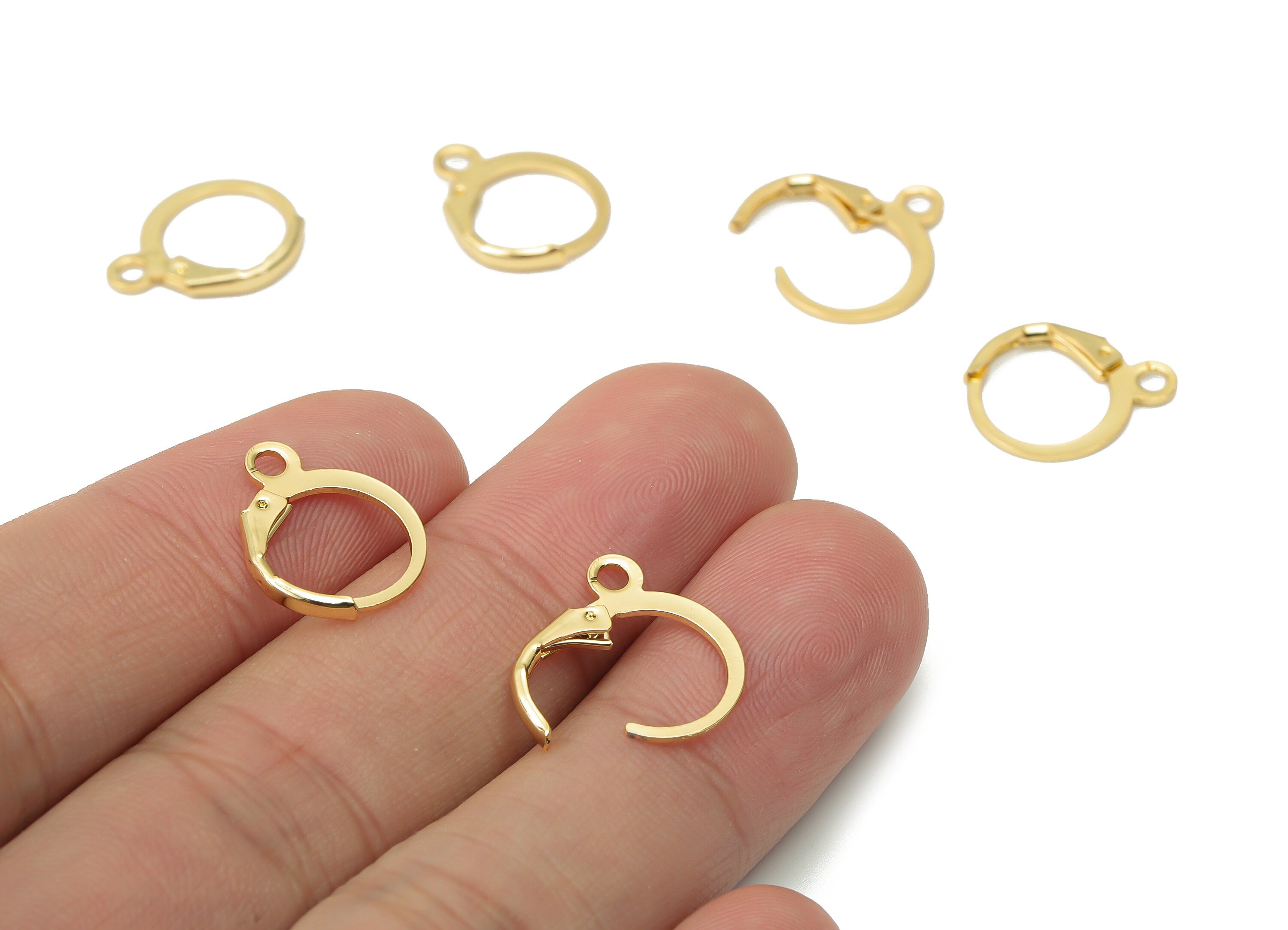 Brass Plain Leverback - Gold Leverback Earring Clasp - 18K Real Gold Plated Brass - Jewelry Making Supplies - 15.63x12.61x1.94mm - RGP4361