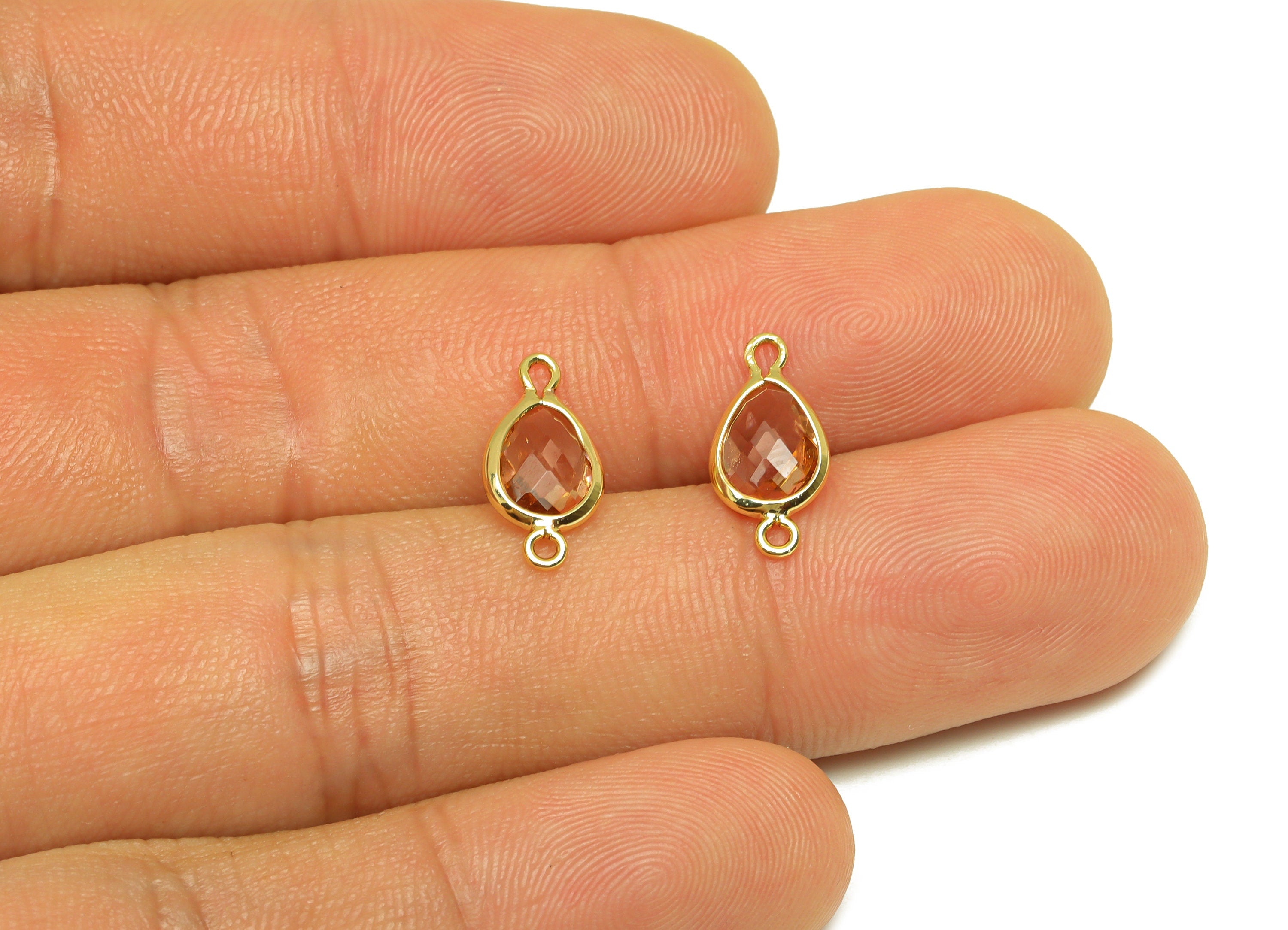 Brass Teardrop Connector - Brass Faceted Glass Earring Charm - Aqua Red Earring Charm - 18K Real Gold Plated