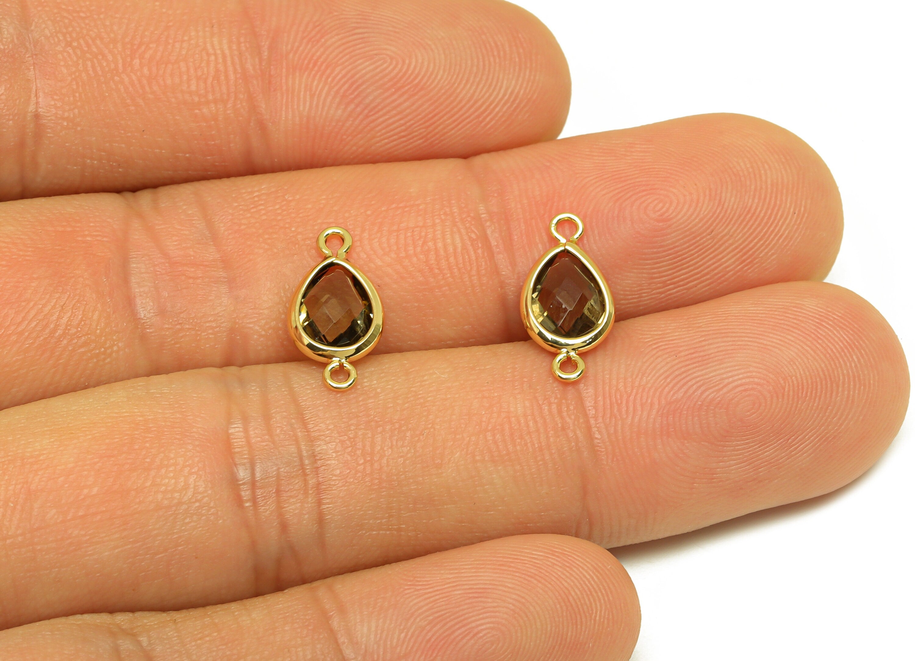 Brass Teardrop Connector - Brass Faceted Glass Earring Charm - Grey Glass Earring Charm - 18K Real Gold Plated