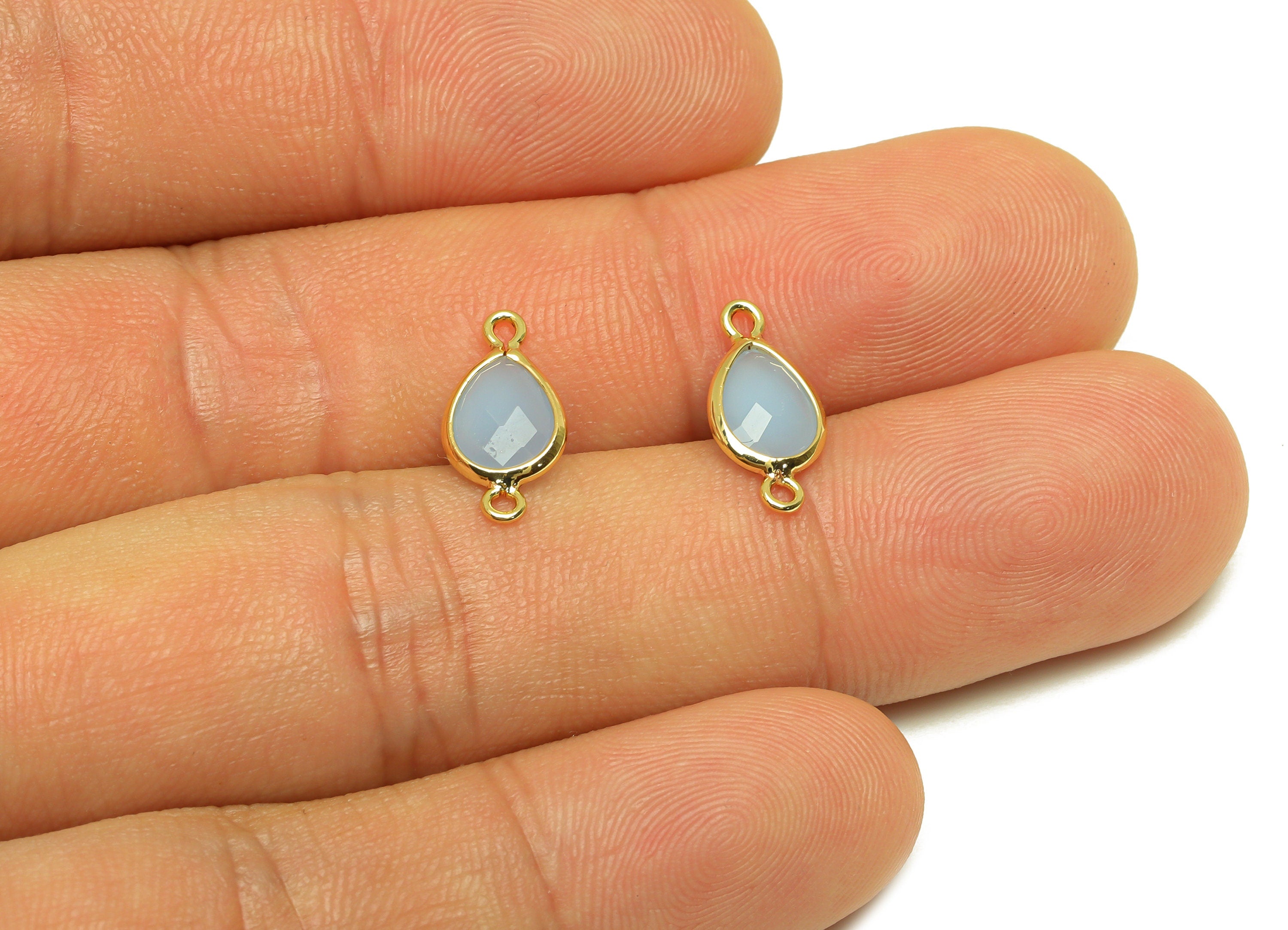 Brass Teardrop Connector - Brass Faceted Glass Earring Charm - Light sapphire Earring Charm - 18K Real Gold Plated
