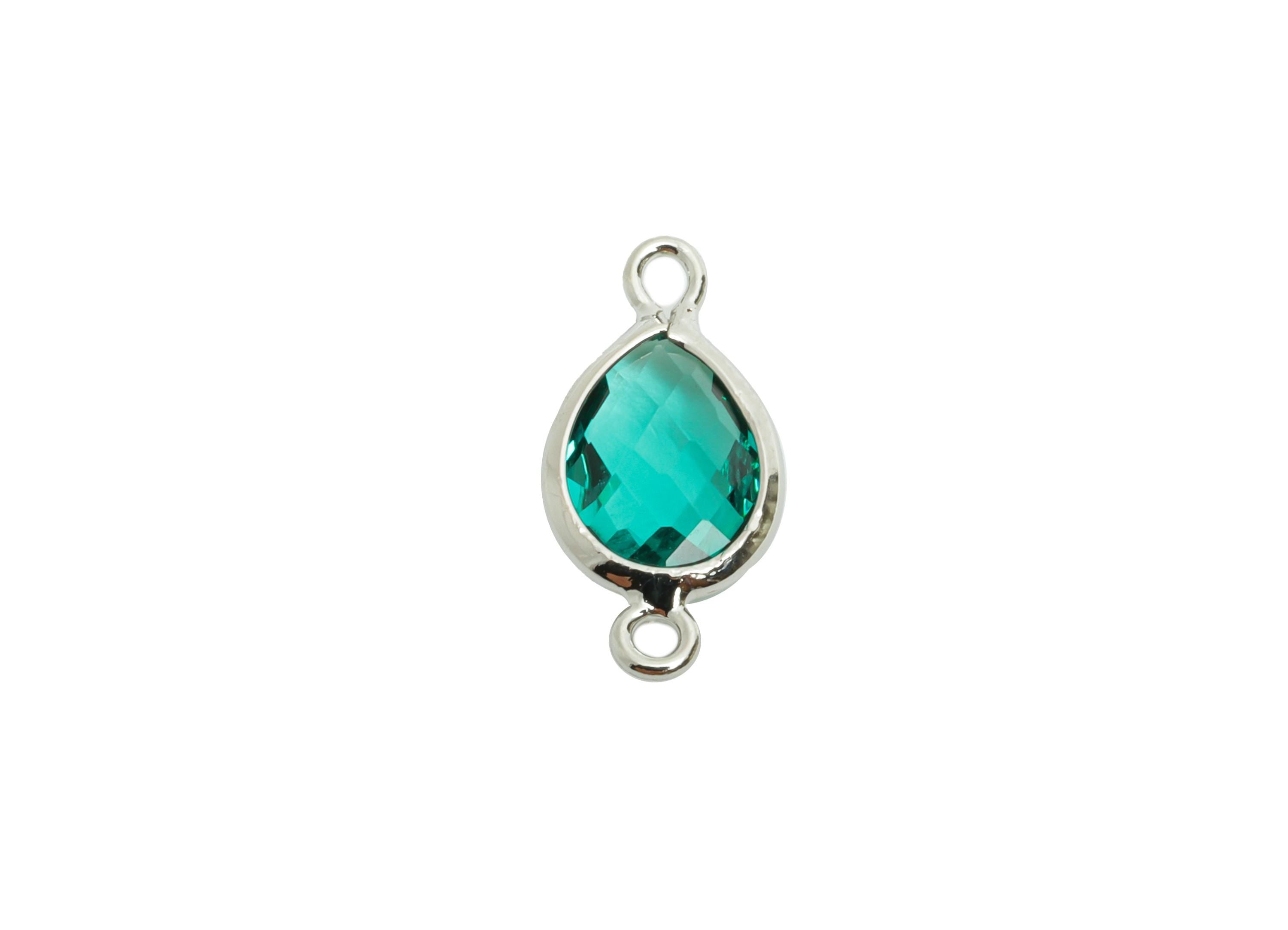 Brass Teardrop Glass Connector - Luxury Faceted Connector - Elegant Drop Decorative Glass Charm - 18K Gold White Plated - 14x6x2mm - GS1356S