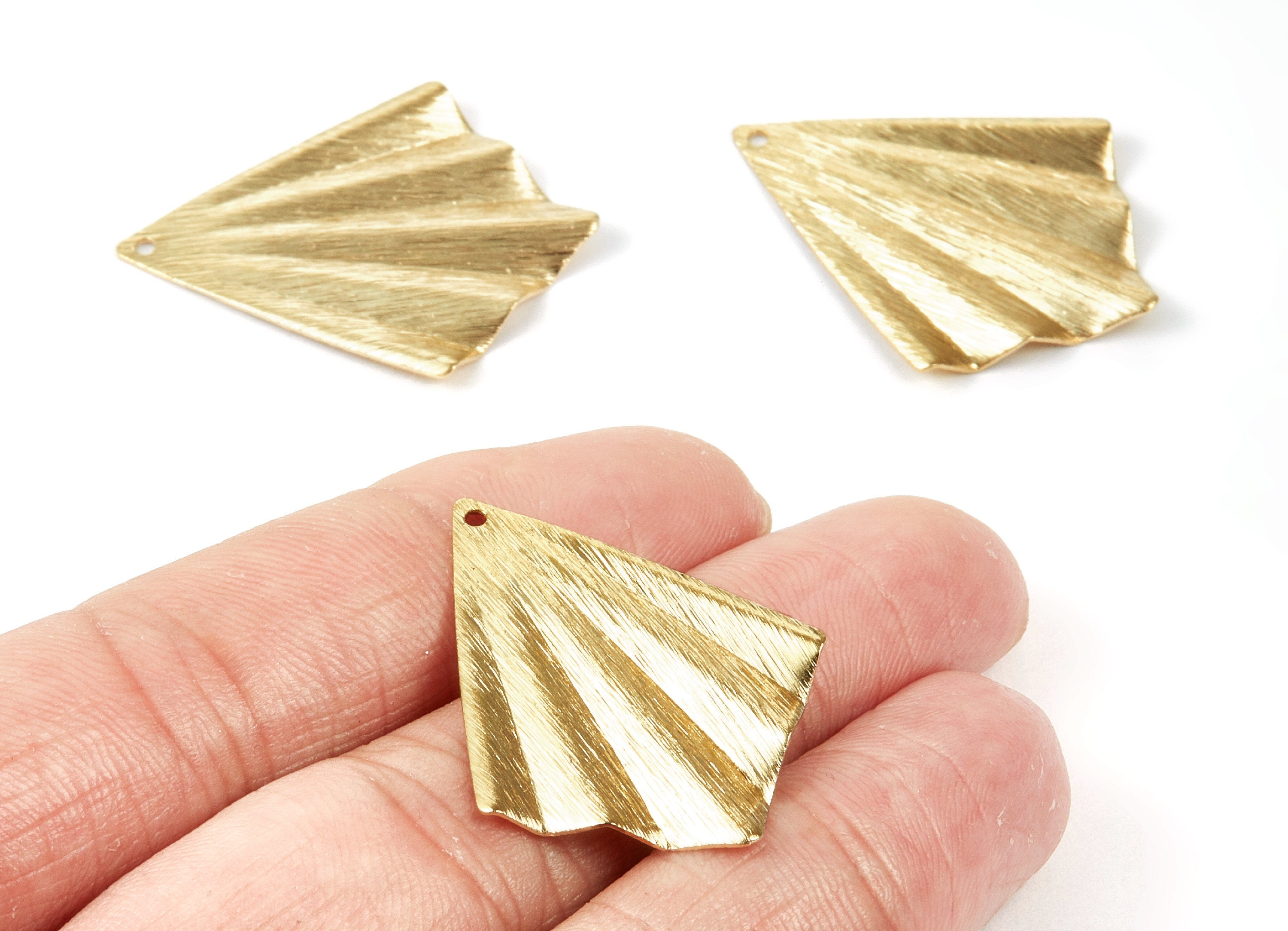 Brass Textured Fan Charms - Textured Fan shaped Raw Brass Pendant - Earring Findings - Jewelry Supplies - 34.9x27.1x1.77mm - PP1958
