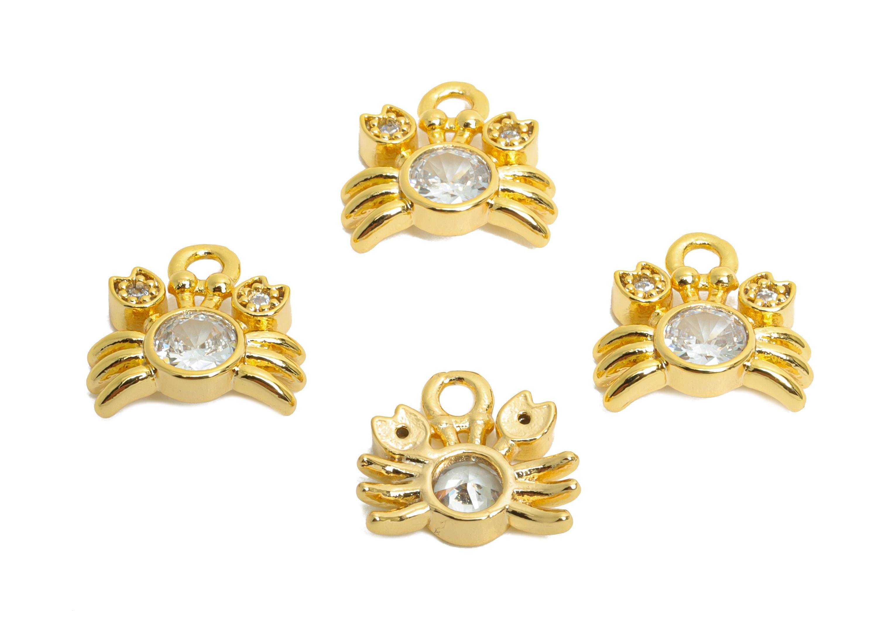 Brass Tiny Crab Charm - Brass Zircon Marine Earring Charm - Textured Mini Crab Bracelet Charm - 18K Real Gold Plated