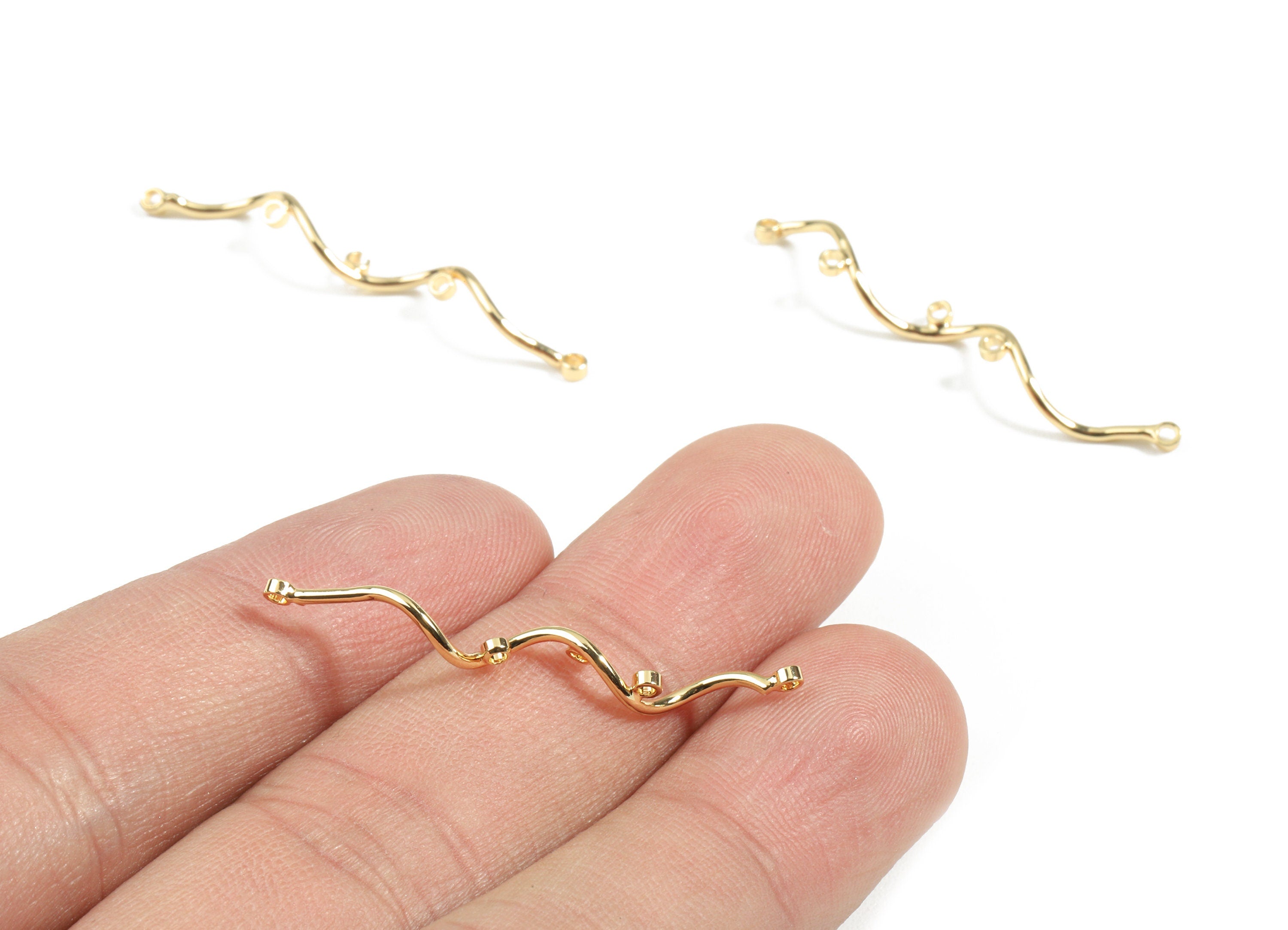 Brass Wire Connectors - Brass Wavy Wire With Loops - 18K Real Gold Plated Brass - Jewelry Supplies - 38.37x3.04x1.04mm - RGP2457