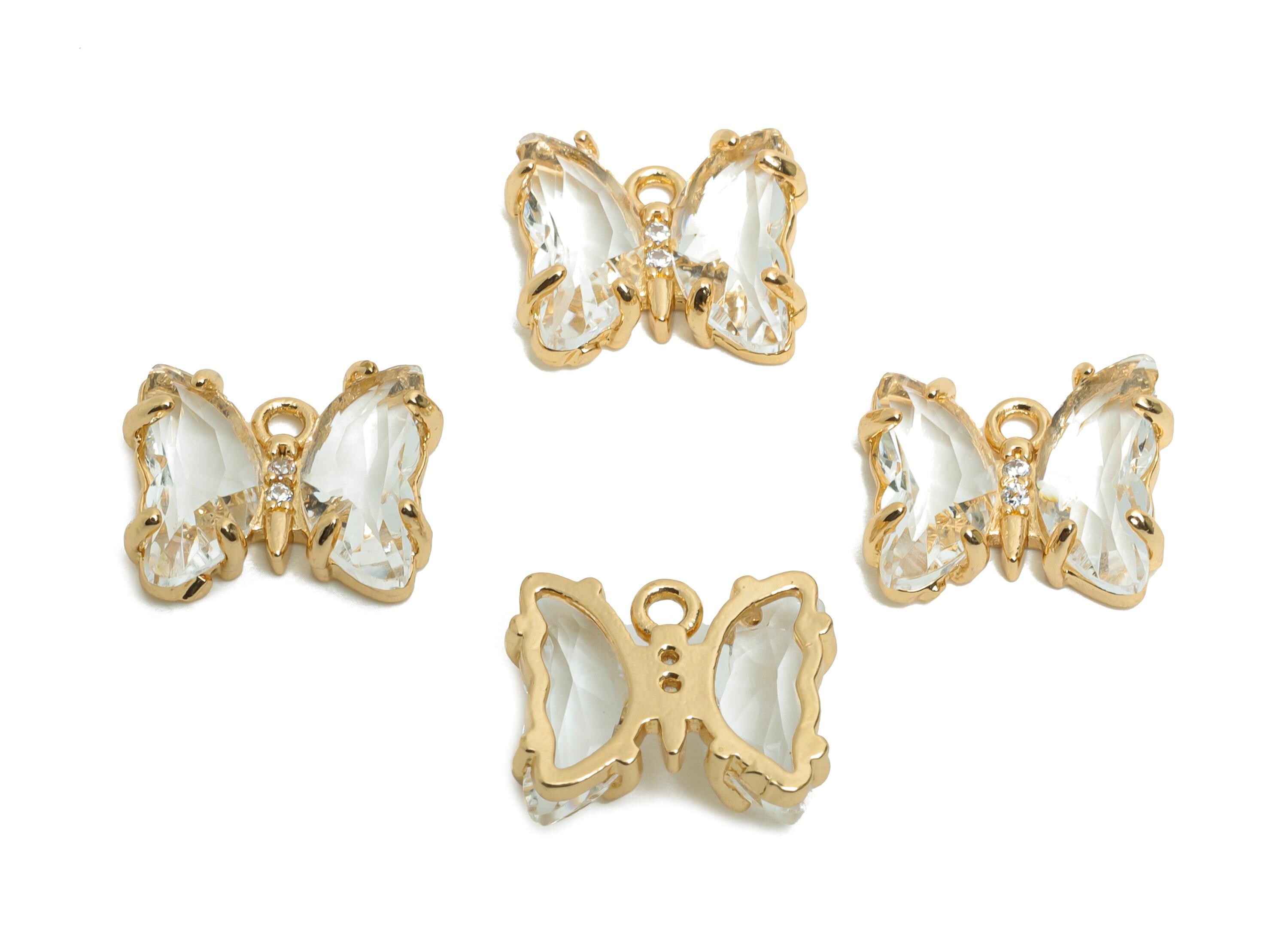 Butterfly Crystal Charm - Sparkling Zircon Glass Pendant - For Necklace - Luxury Jewelry DIY - KC Gold Tone Plated