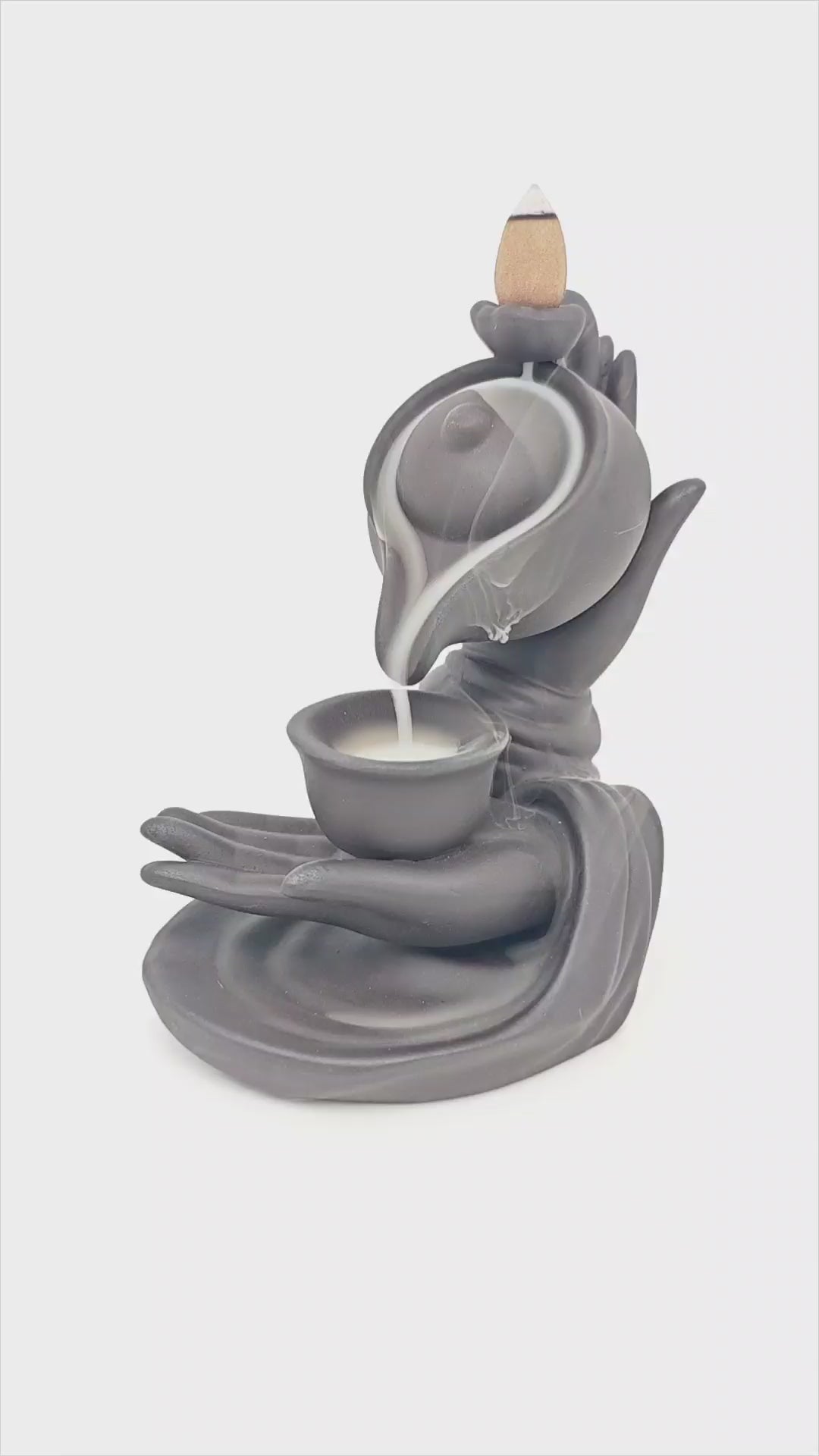 Ceramic Reflux Incense Burner - Decorative Incense Burner Biblo - Cup and Teapot Sculpture Hand Holding Teapot Backflow Incense Burner 14cm BIB-14