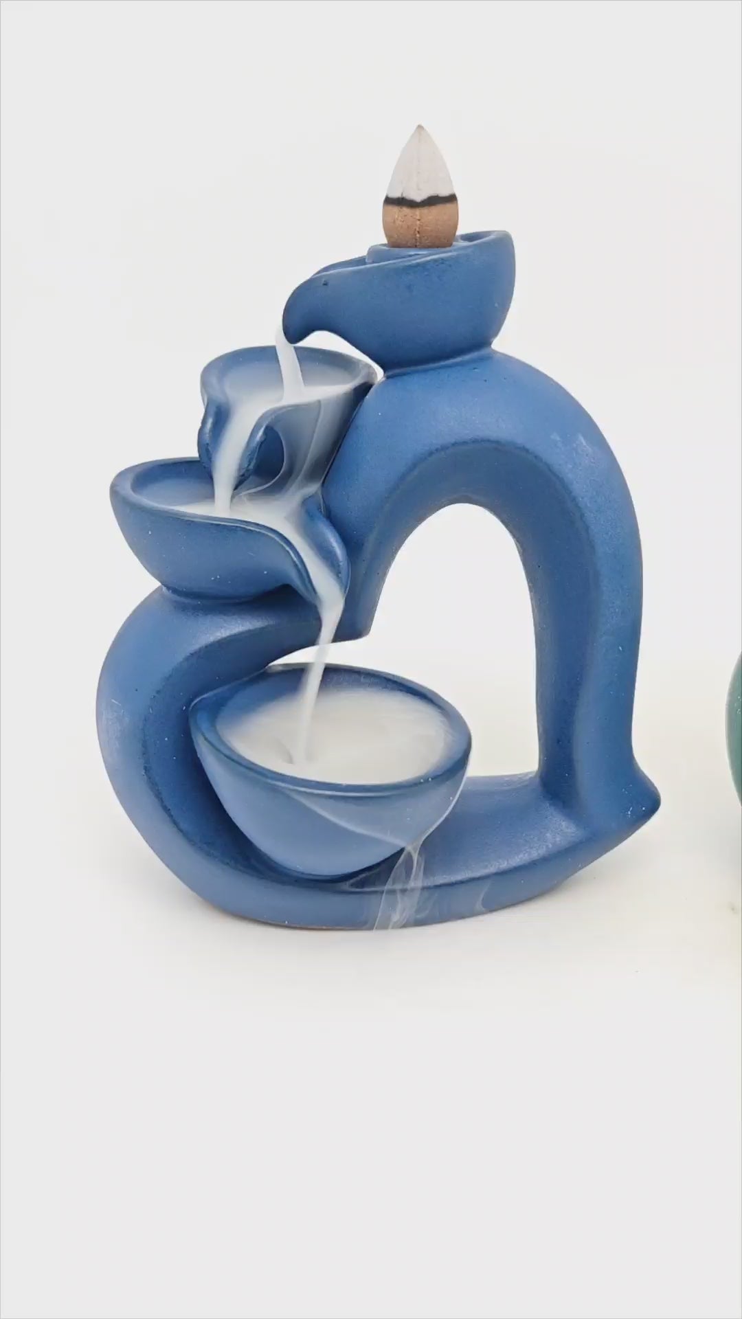 Ceramic Reflux Incense Burner - Decorative Incense Burner Biblo - Colorful Blue and Green Aromatherapy Incense Cascade Burner 15cm BIB-60/61