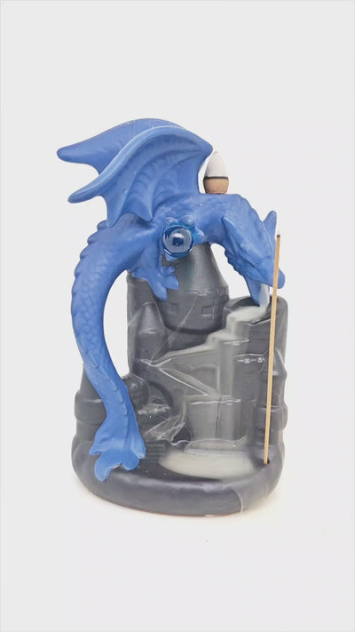 Ceramic Reflux Incense Burner - Decorative Incense Burner Biblo - Blue and Green Winged Crystal Dragon Burner 18cm