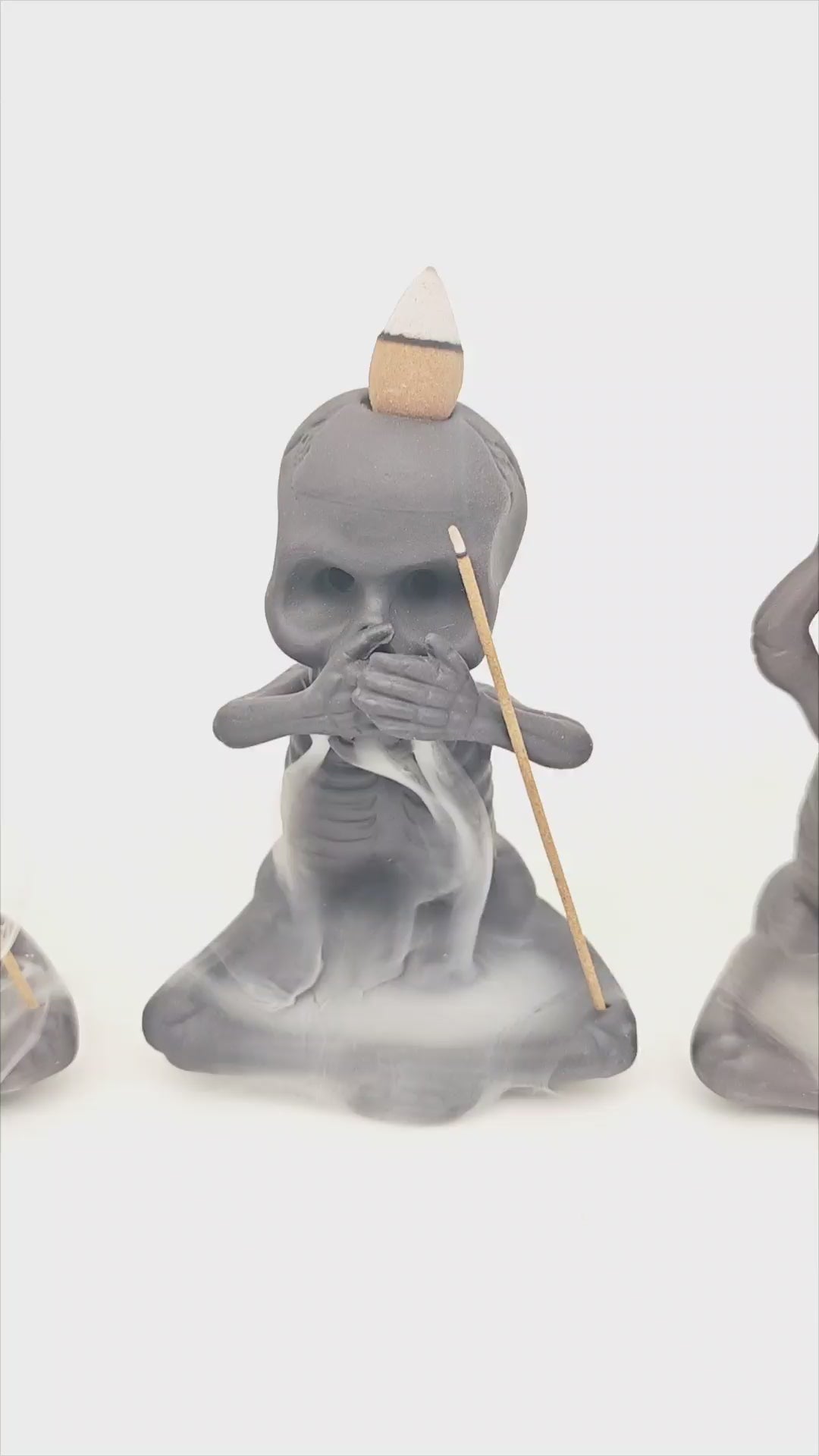 Ceramic Reflux Incense Burner - Decorative Incense Burner Biblo - Artistic Skeleton Figurine Set See Hear Speak No Evil Skeletons Burner 11.5cm BIB-38/39/40