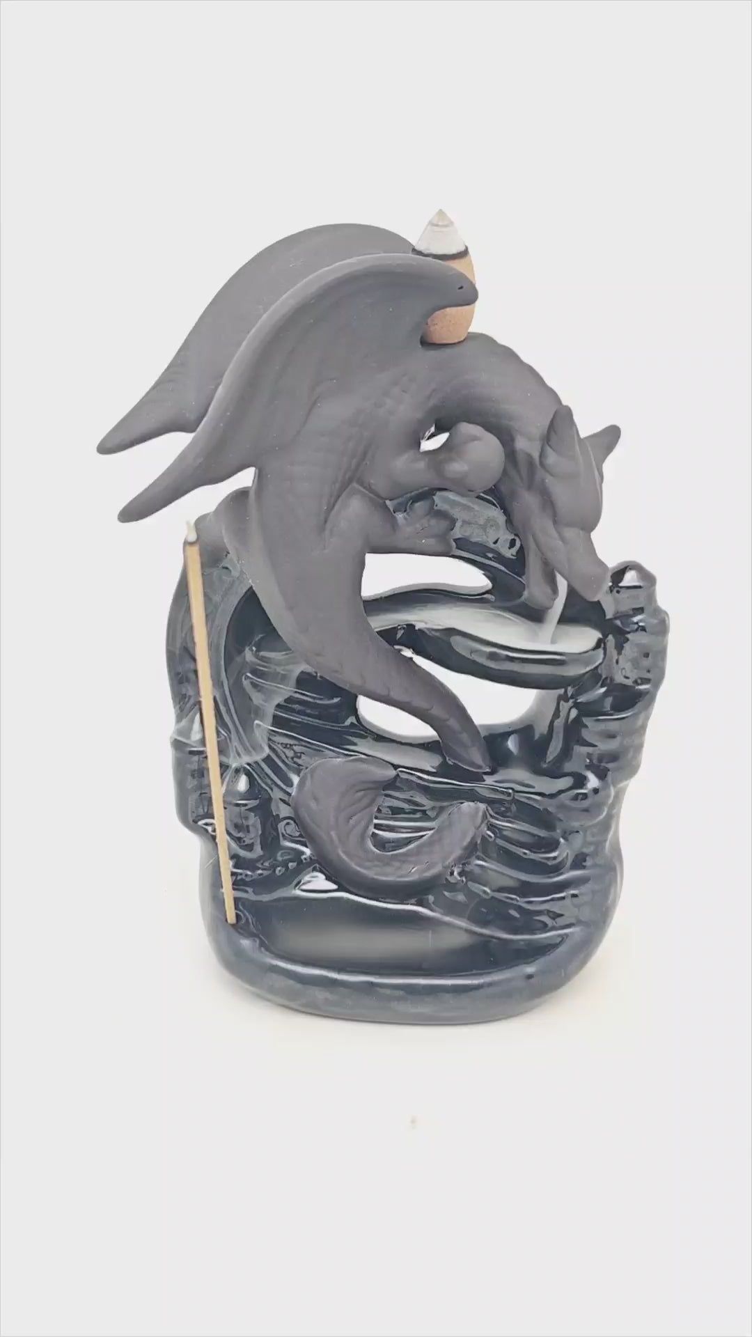 Ceramic Reflux Incense Burner - Decorative Incense Burner Biblo - Artistic Winged Dragon and Fountain Burner 16cm