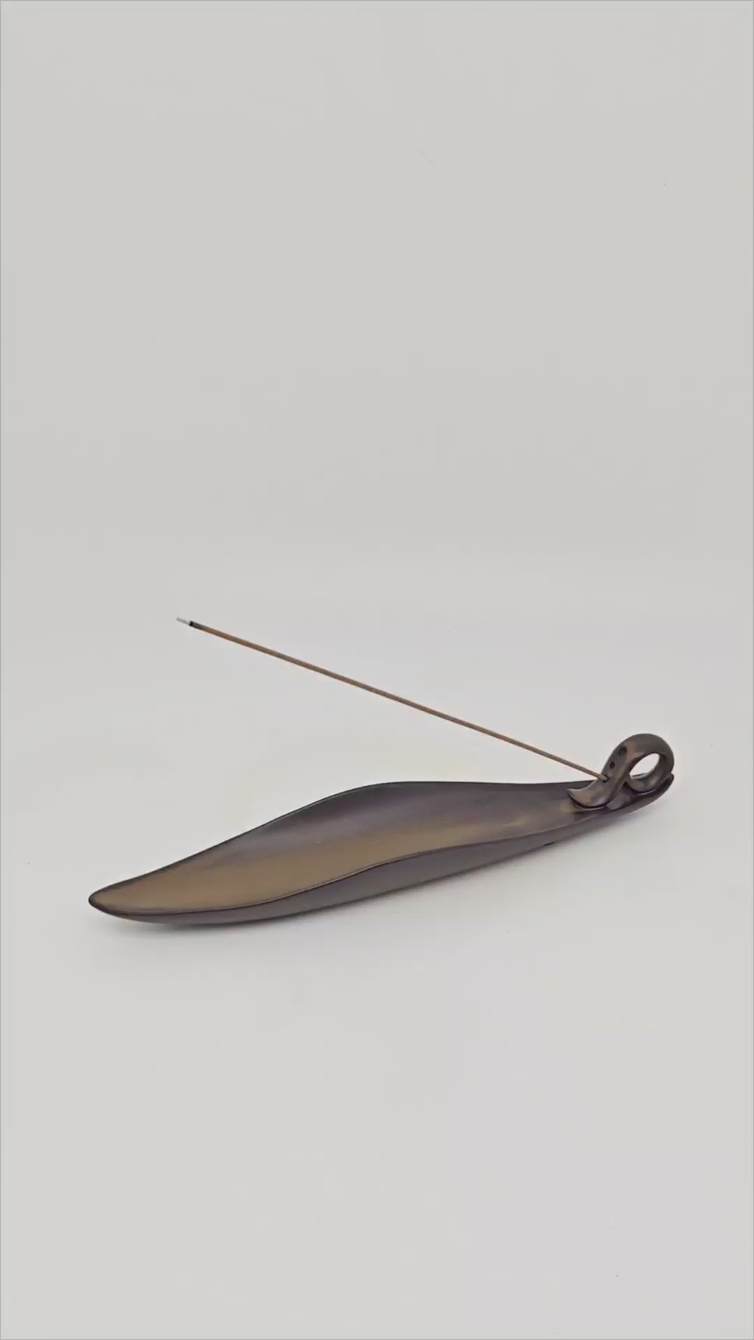 Ceramic Reflux Incense Burner - Decorative Incense Burner Biblo - Smooth Bronze Nature Sleek Curved Leaf Burner 23cm BIB-17