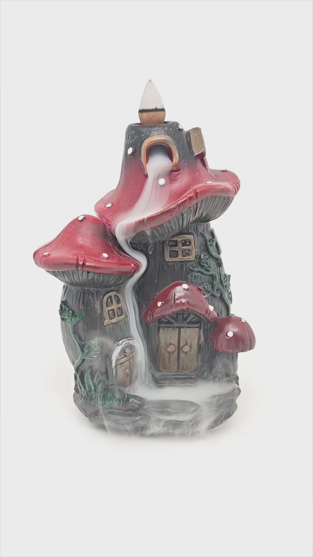 Ceramic Reflux Incense Burner - Decorative Incense Burner Biblo - Mushroom House Miniature Fairy House Burner 16cm