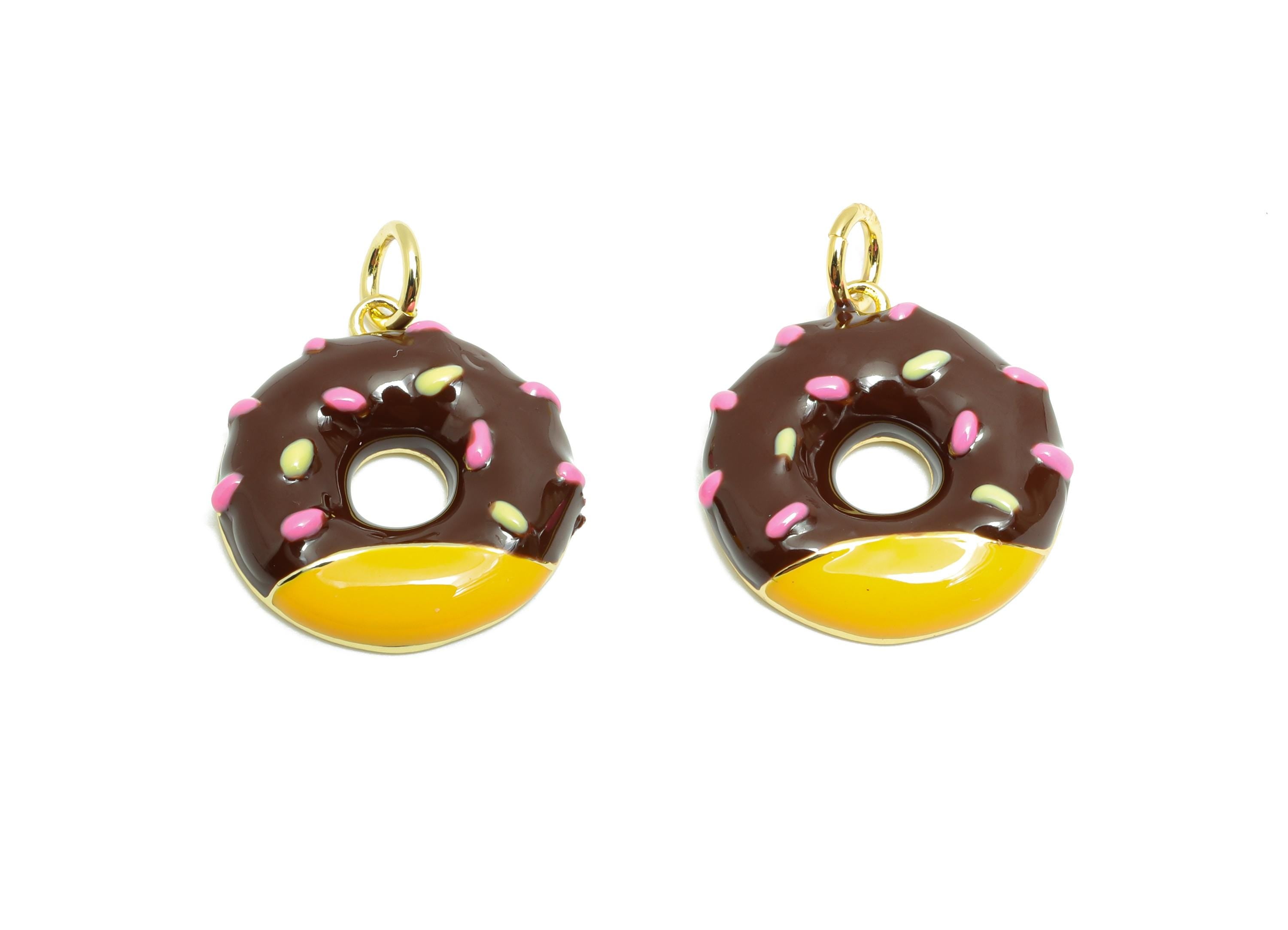 Chocolate Donut Bracelet Charm- Colorful Enamel Dessert Pendant - Brass Jewelry Accessories - 18K Gold-Plated