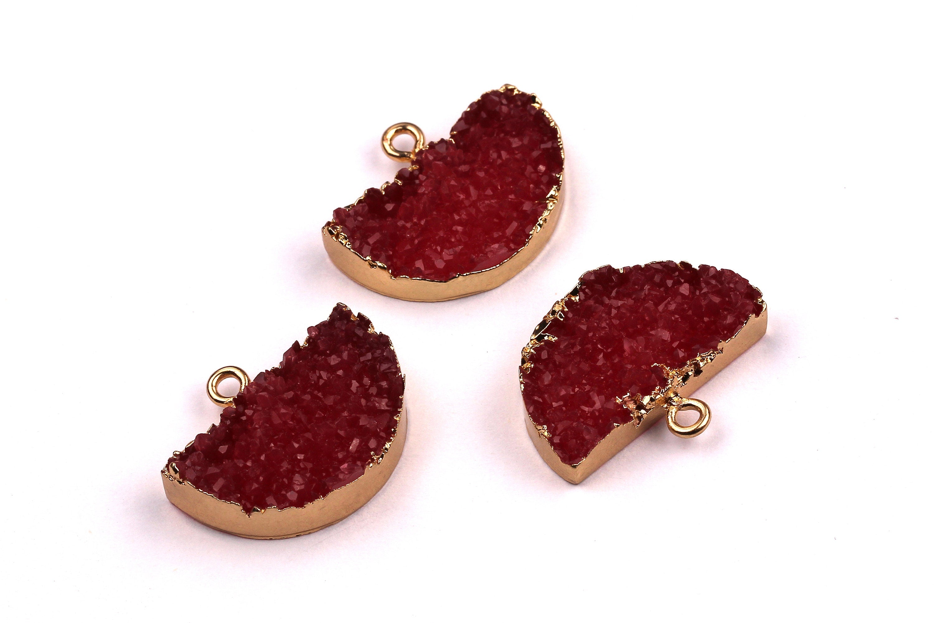 Semi Circle Shaped Resin & Copper Druzy Charms. Perfect for earrings, necklace and jewelry designs.