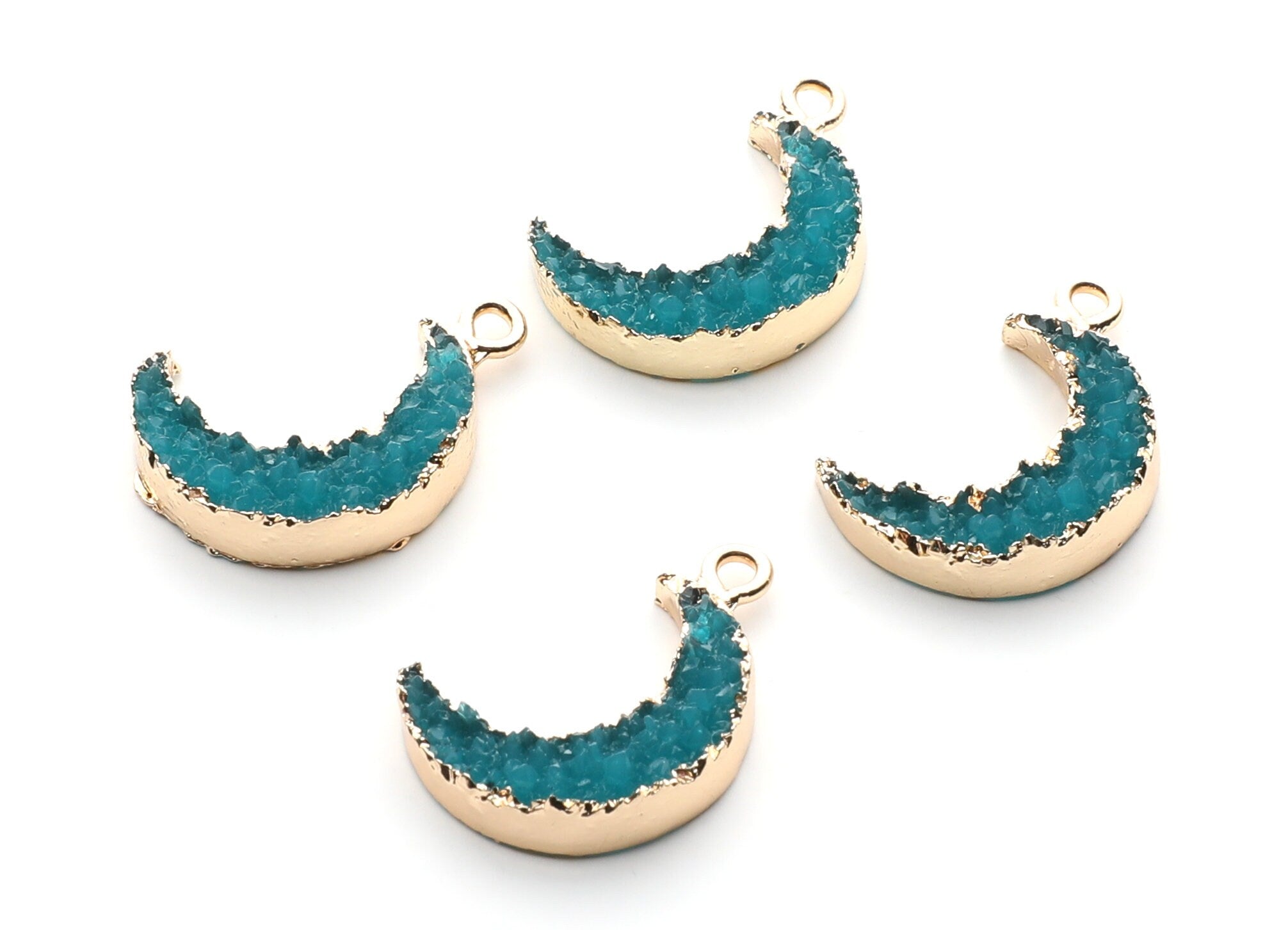 Moon Shaped Resin & Copper Druzy Charms. Perfect for earrings, Necklace and jewelry designs.