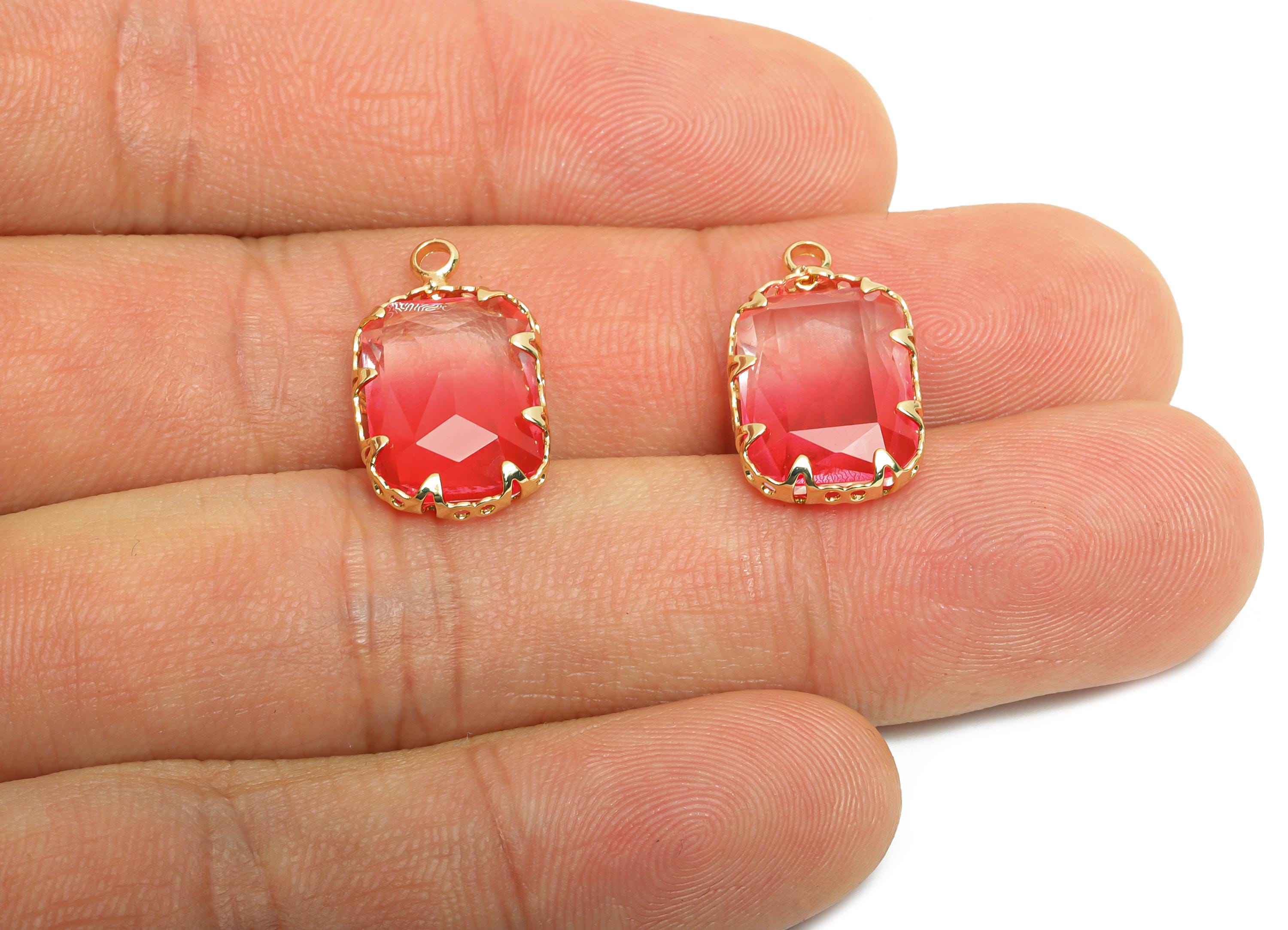 Faceted Rectangle Crystal Charm - Brass Gradient Glass Pendant - Elegant Geometric Jewelry - KC Gold Tone Plated