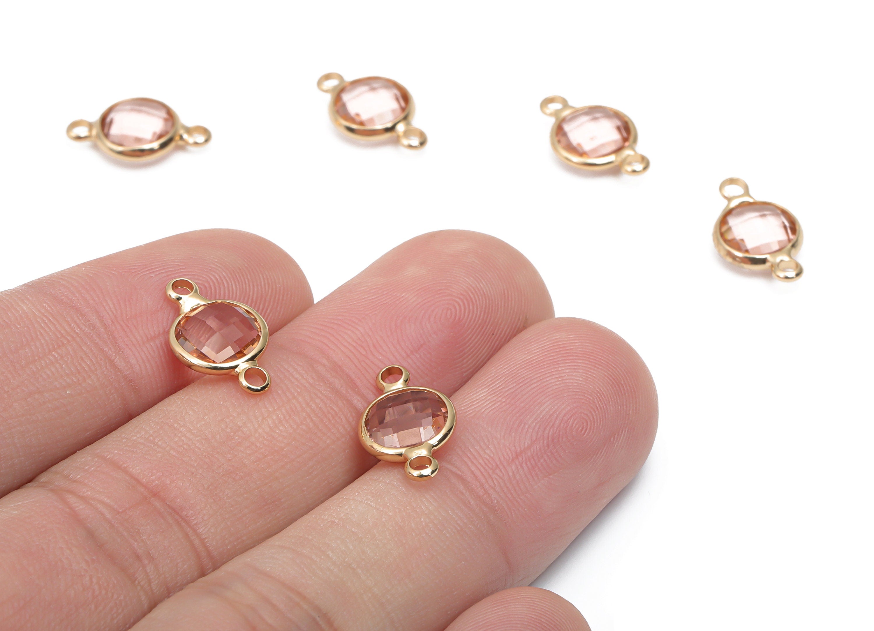 Glass Round Earring Connector - Brass Circle Frame Charms and Pendant - Gold Tone Plated Brass - Faceted Glass - 14.63x8.76x3.74mm - GS1122