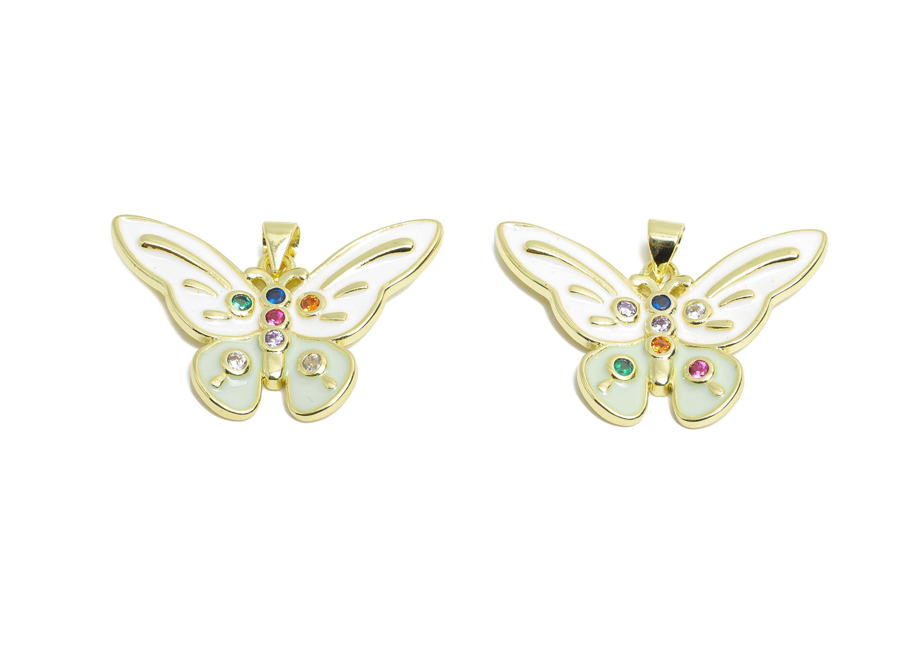 Gold Enamel Butterfly Pendant - Brass Luxury Zircon Whimsical Jewelry - Artistic Colorful Jewelry - 18K Real Gold Plated