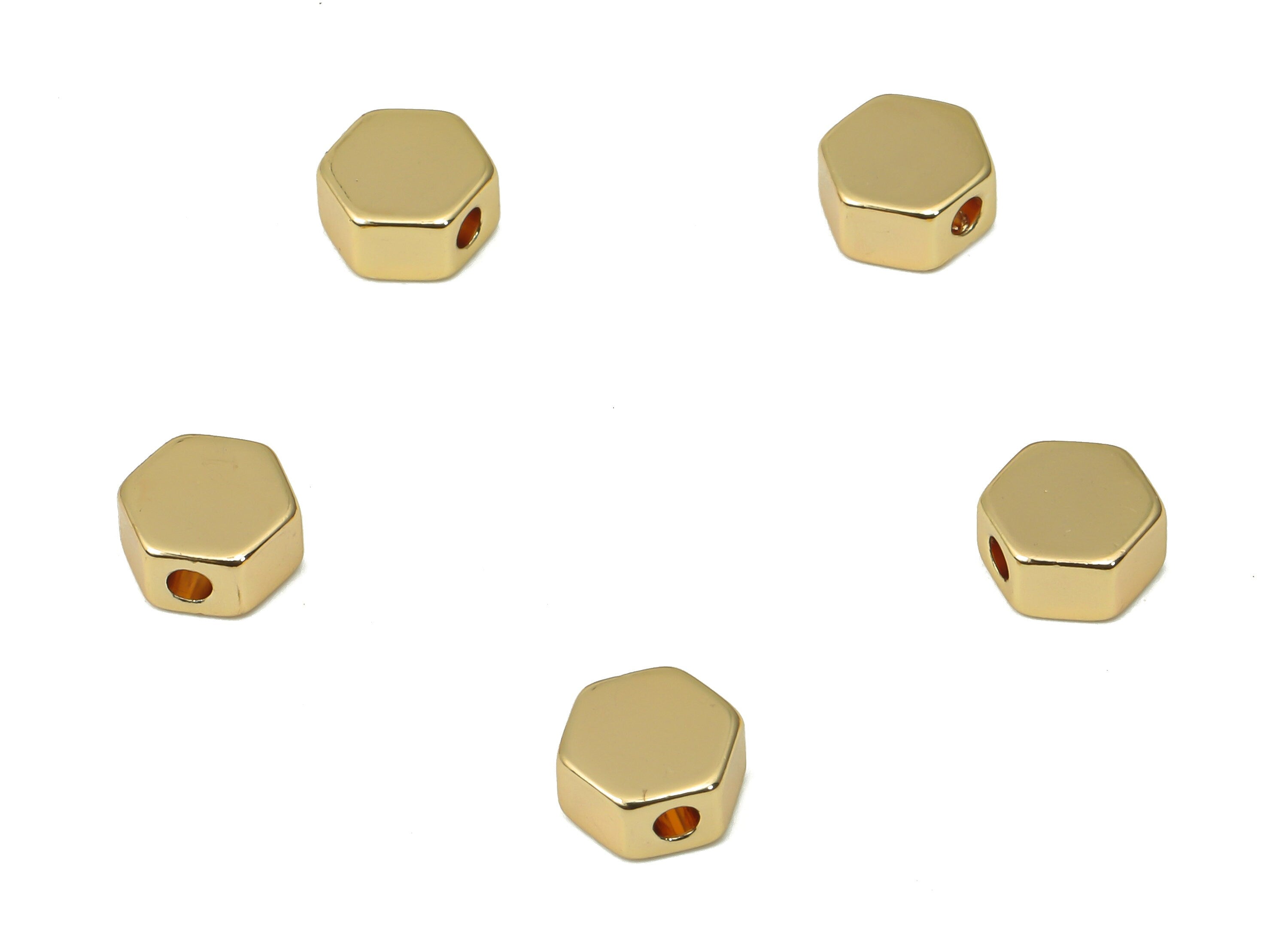 Gold Hexagon Beads – Brass Hexagon Spacer Beads – Bracelet Beads - 18K Real Gold Plated Brass - Jewelry Making - 5.96x5.96x3.17mm - RGP4452