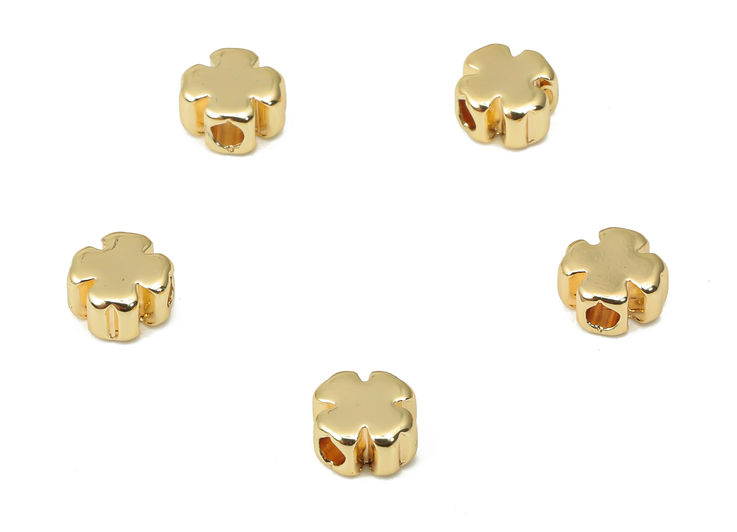 Gold Mini Clover Beads – Brass Leaf Spacer Beads – Bracelet Beads - 18K Real Gold Plated Brass - Jewelry Making - 4.98x4.98x2.75mm - RGP4430