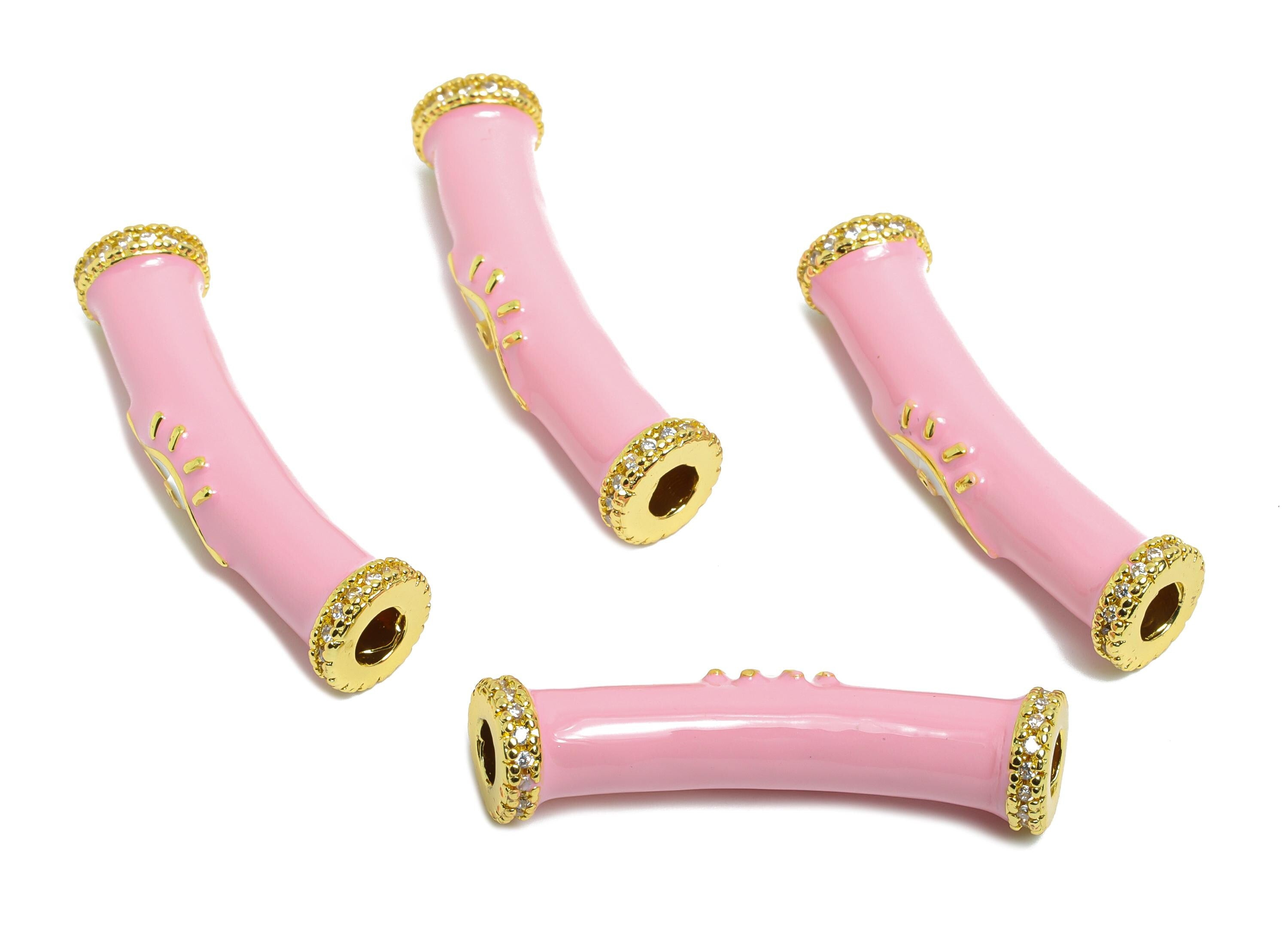 Handmade Bracelet Bead - Gold Enamel Eye CZ Curved Spacer Tube - DIY Jewelry Accessories - 18K Real Gold Plated